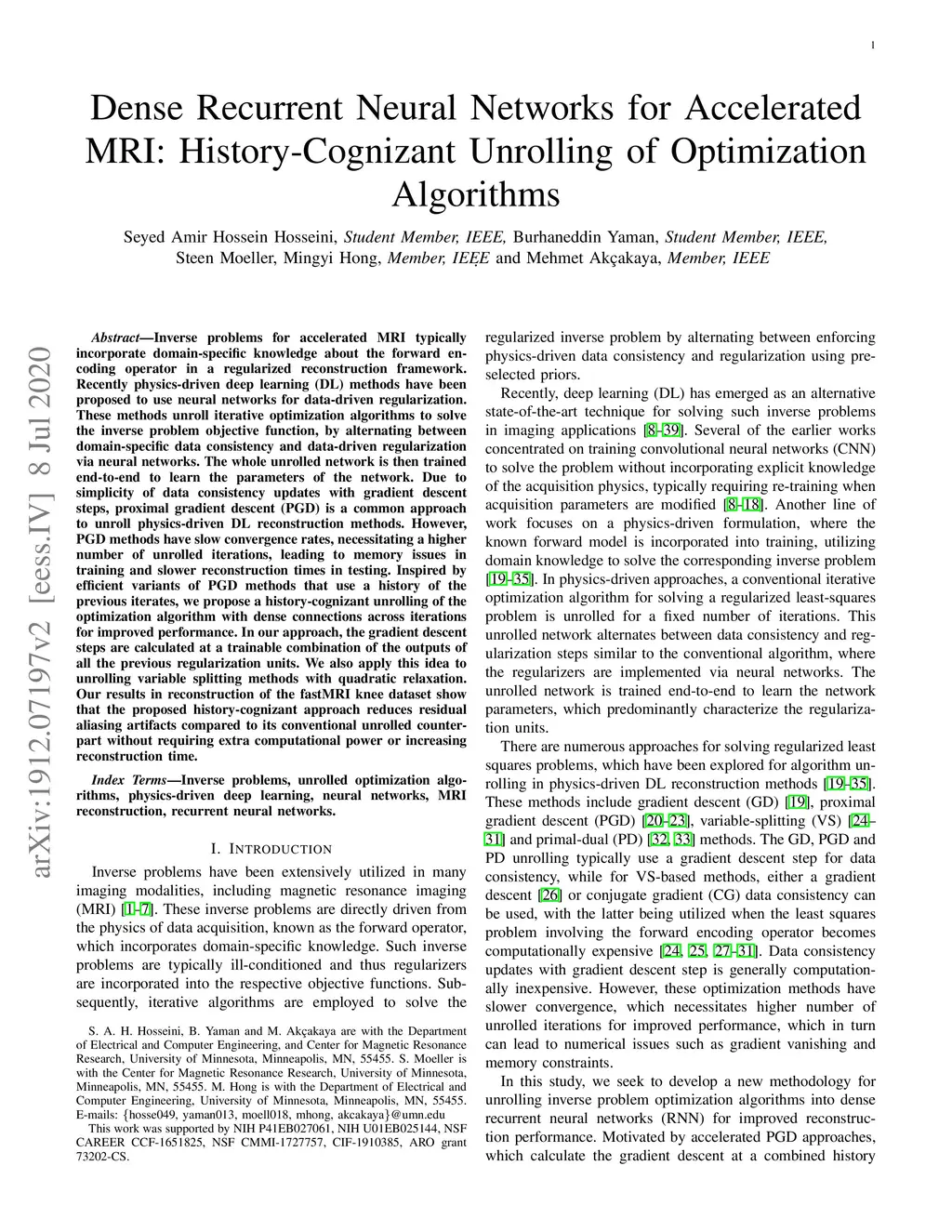 Dense Recurrent Neural Networks for Accelerated MRI: History-Cognizant