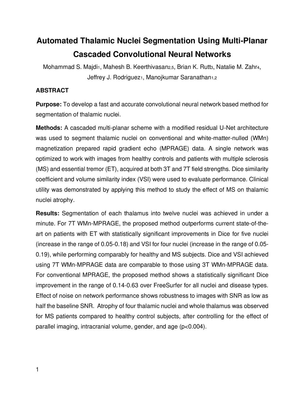 Automated Thalamic Nuclei Segmentation Using Multi-Planar Cascaded