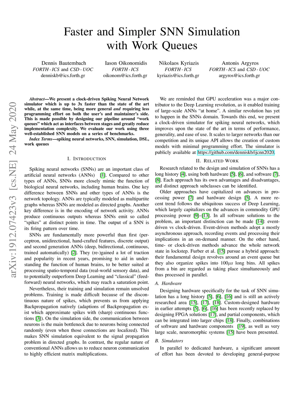 We present a clock-driven Spiking Neural Network simulator which is up to 3x faster than the state of the art while, at the same time, being more general and requiring less programming effort on both the user's and maintainer's side. This is made possible by designing our pipeline around "work queues" which act as interfaces between stages and greatly reduce implementation complexity. We evaluate our work using three well-established SNN models on a series of benchmarks.