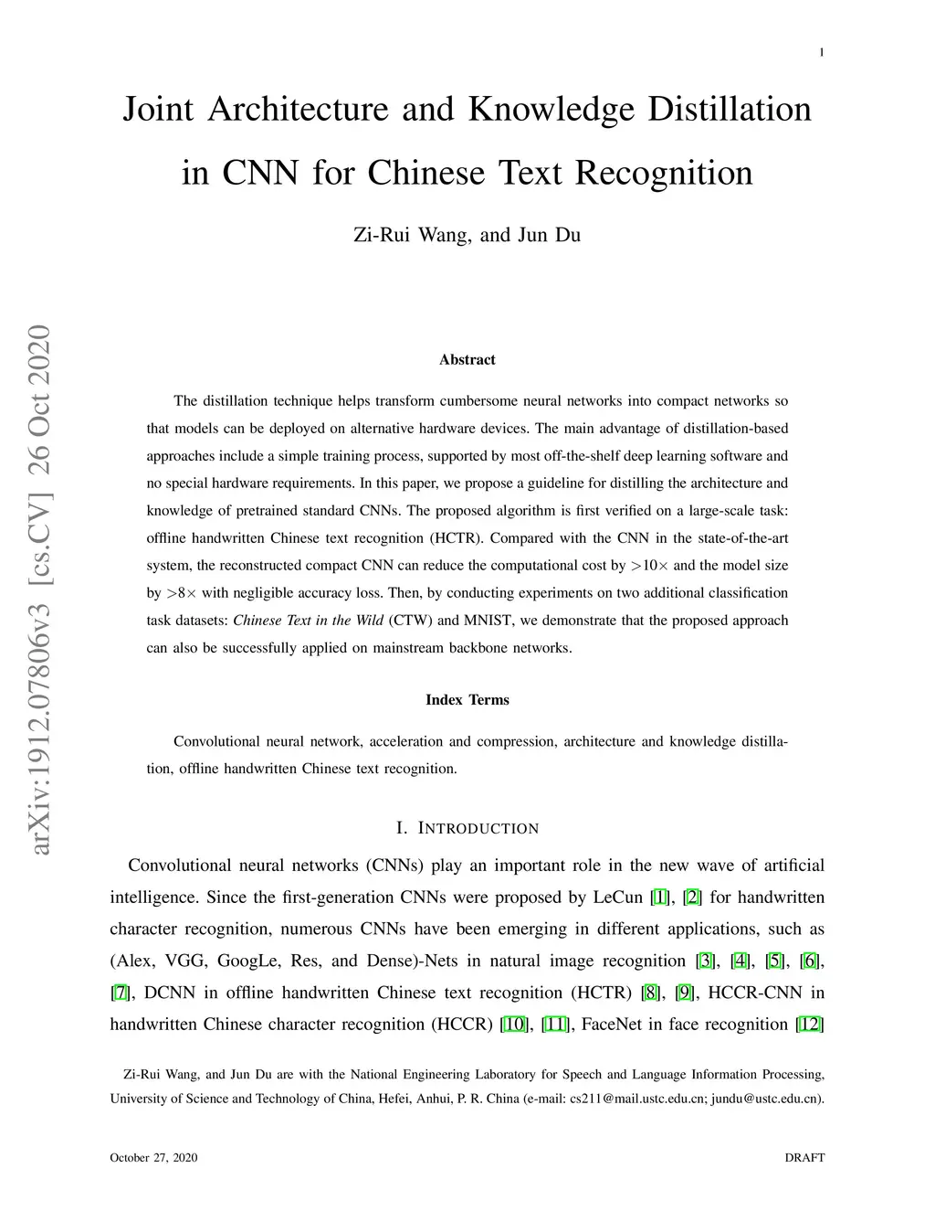 Joint Architecture and Knowledge Distillation in CNN for Chinese Text