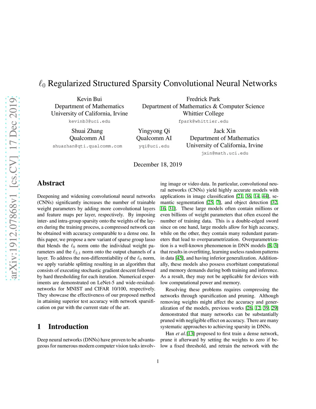 Deepening and widening convolutional neural networks (CNNs) significantly increases the number of trainable weight parameters by adding more convolutional layers and feature maps per layer, respectively. By imposing inter- and intra-group sparsity onto the weights of the layers during the training process, a compressed network can be obtained with accuracy comparable to a dense one. In this paper, we propose a new variant of sparse group lasso that blends the norm onto the individual weight parameters and the norm onto the output channels of a layer. To address the non-differentiability of the norm, we apply variable splitting resulting in an algorithm that consists of executing stochastic gradient descent followed by hard thresholding for each iteration. Numerical experiments are demonstrated on LeNet-5 and wide-residual-networks for MNIST and CIFAR 10/100, respectively. They showcase the effectiveness of our proposed method in attaining superior test accuracy with network sparsification on par with the current state of the art.