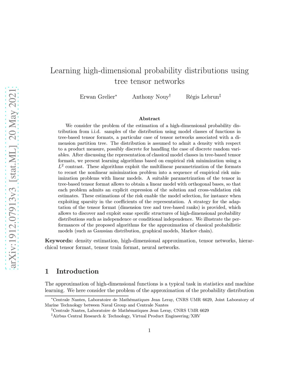 Learning high-dimensional probability distributions using tree tensor