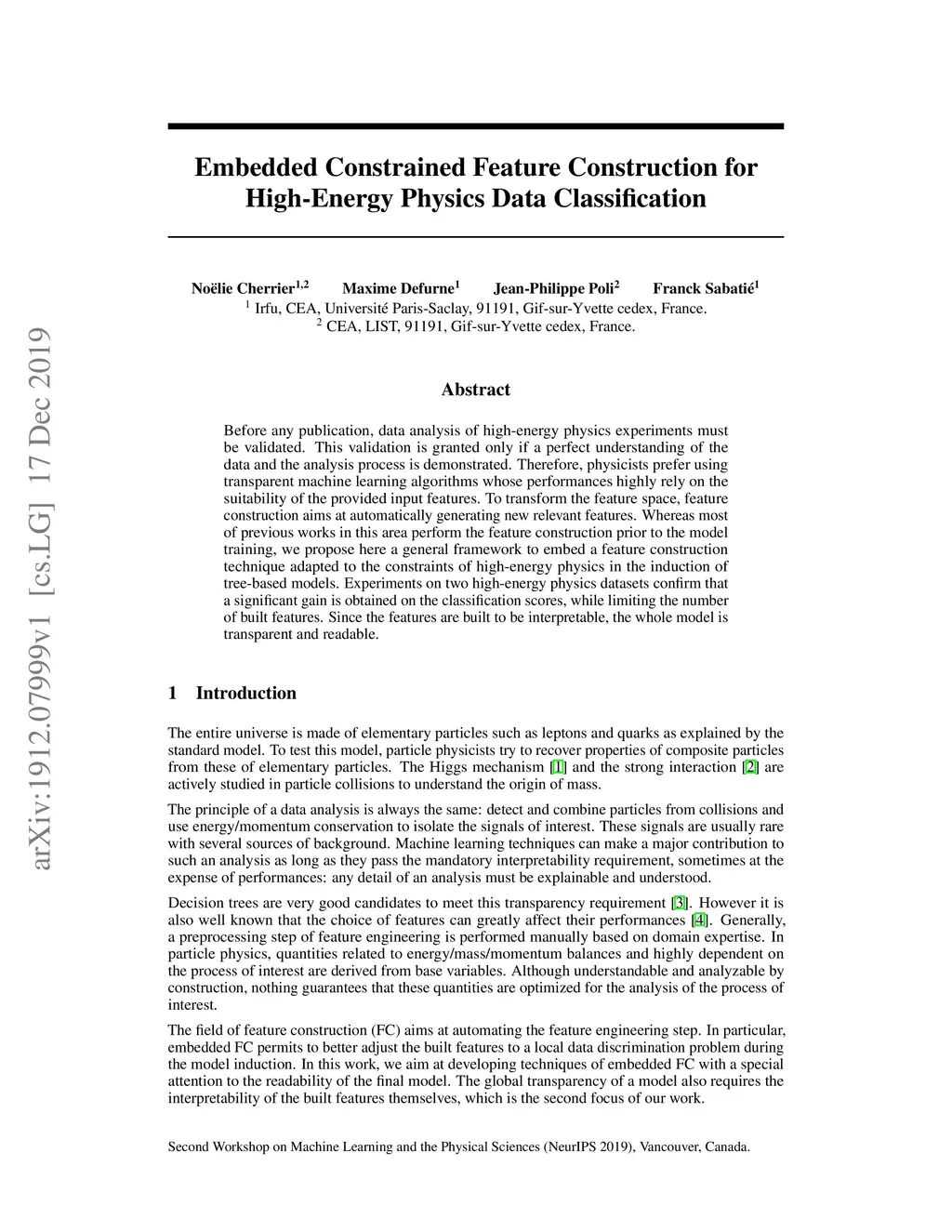Embedded Constrained Feature Construction for High-Energy Physics Data