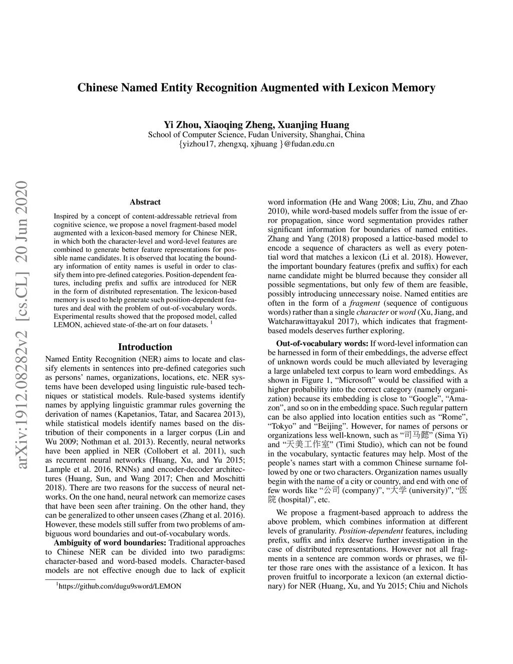 Chinese Named Entity Recognition Augmented with Lexicon Memory