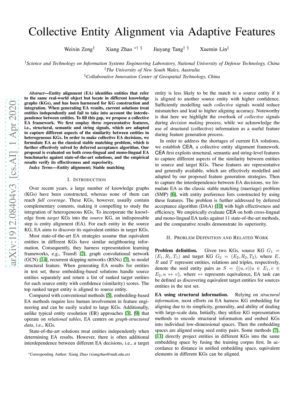 Entity alignment (EA) identifies entities that refer to the same real-world object but locate in different knowledge graphs (KGs), and has been harnessed for KG construction and integration. When generating EA results, current solutions treat entities independently and fail to take into account the interdependence between entities. To fill this gap, we propose a collective EA framework. We first employ three representative features, i.e., structural, semantic and string signals, which are adapted to capture different aspects of the similarity between entities in heterogeneous KGs. In order to make collective EA decisions, we formulate EA as the classical stable matching problem, which is further effectively solved by deferred acceptance algorithm. Our proposal is evaluated on both cross-lingual and mono-lingual EA benchmarks against state-of-the-art solutions, and the empirical results verify its effectiveness and superiority.