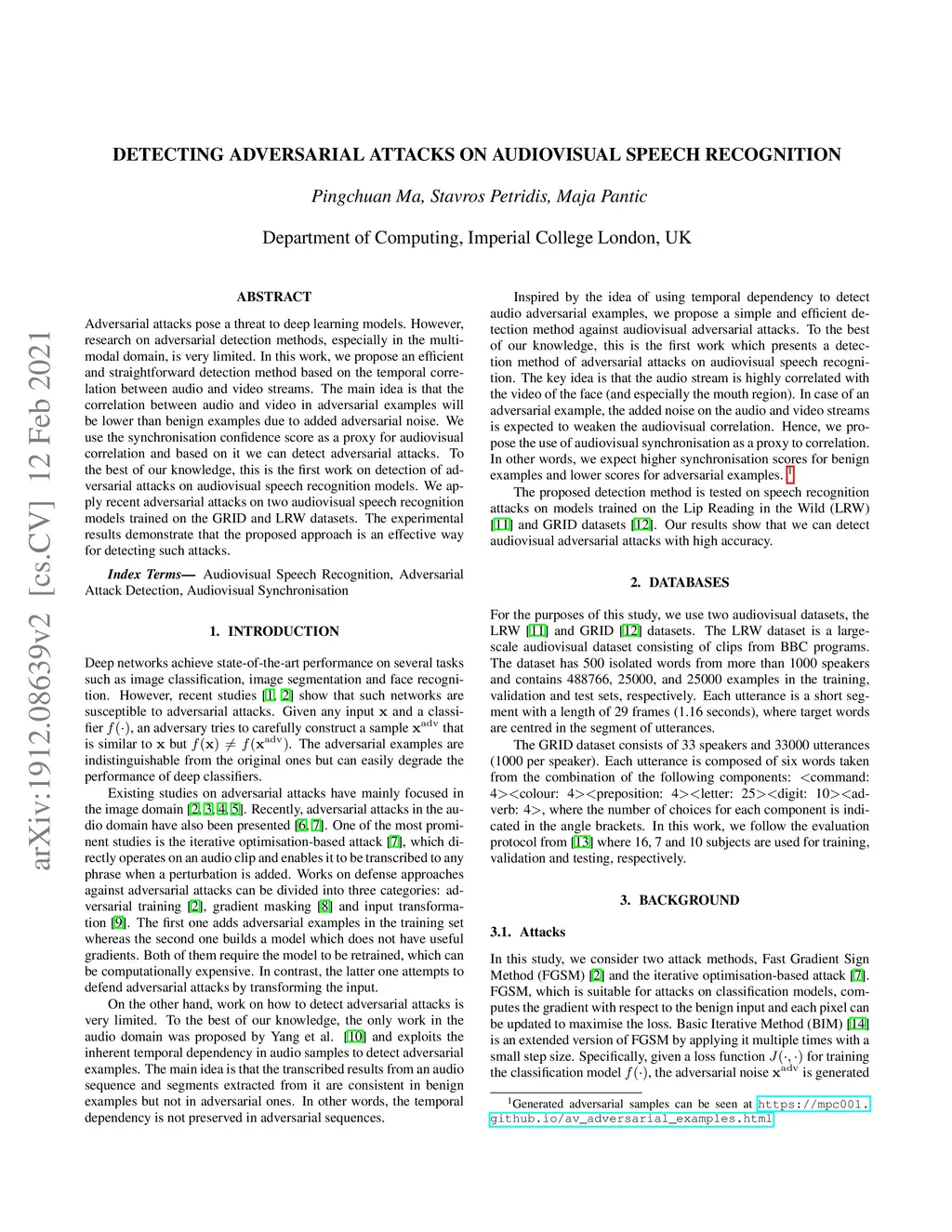 Detecting Adversarial Attacks On Audiovisual Speech Recognition