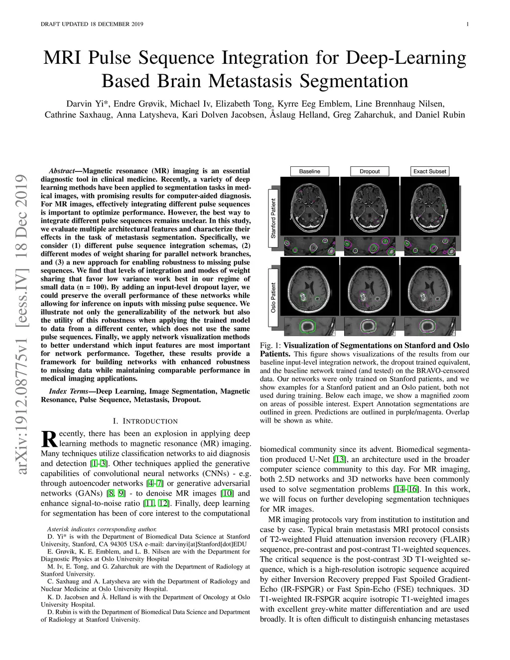 Magnetic resonance (MR) imaging is an essential diagnostic tool in clinical medicine. Recently, a variety of deep learning methods have been applied to segmentation tasks in medical images, with promising results for computer-aided diagnosis. For MR images, effectively integrating different pulse sequences is important to optimize performance. However, the best way to integrate different pulse sequences remains unclear. In this study, we evaluate multiple architectural features and characterize their effects in the task of metastasis segmentation. Specifically, we consider (1) different pulse sequence integration schemas, (2) different modes of weight sharing for parallel network branches, and (3) a new approach for enabling robustness to missing pulse sequences. We find that levels of integration and modes of weight sharing that favor low variance work best in our regime of small data (n = 100). By adding an input-level dropout layer, we could preserve the overall performance of these networks while allowing for inference on inputs with missing pulse sequence. We illustrate not only the generalizability of the network but also the utility of this robustness when applying the trained model to data from a different center, which does not use the same pulse sequences. Finally, we apply network visualization methods to better understand which input features are most important for network performance. Together, these results provide a framework for building networks with enhanced robustness to missing data while maintaining comparable performance in medical imaging applications.