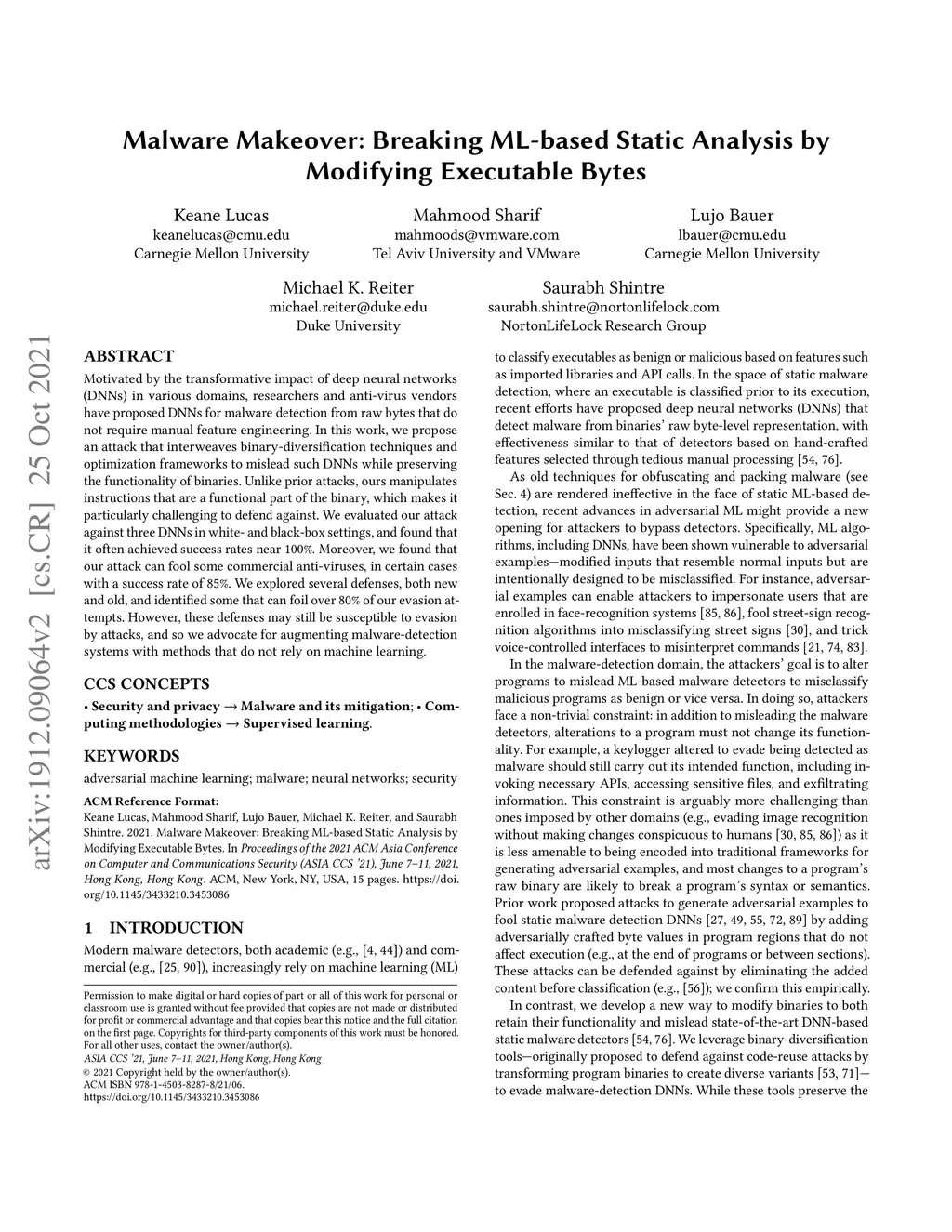 Malware Makeover: Breaking ML-based Static Analysis by Modifying
