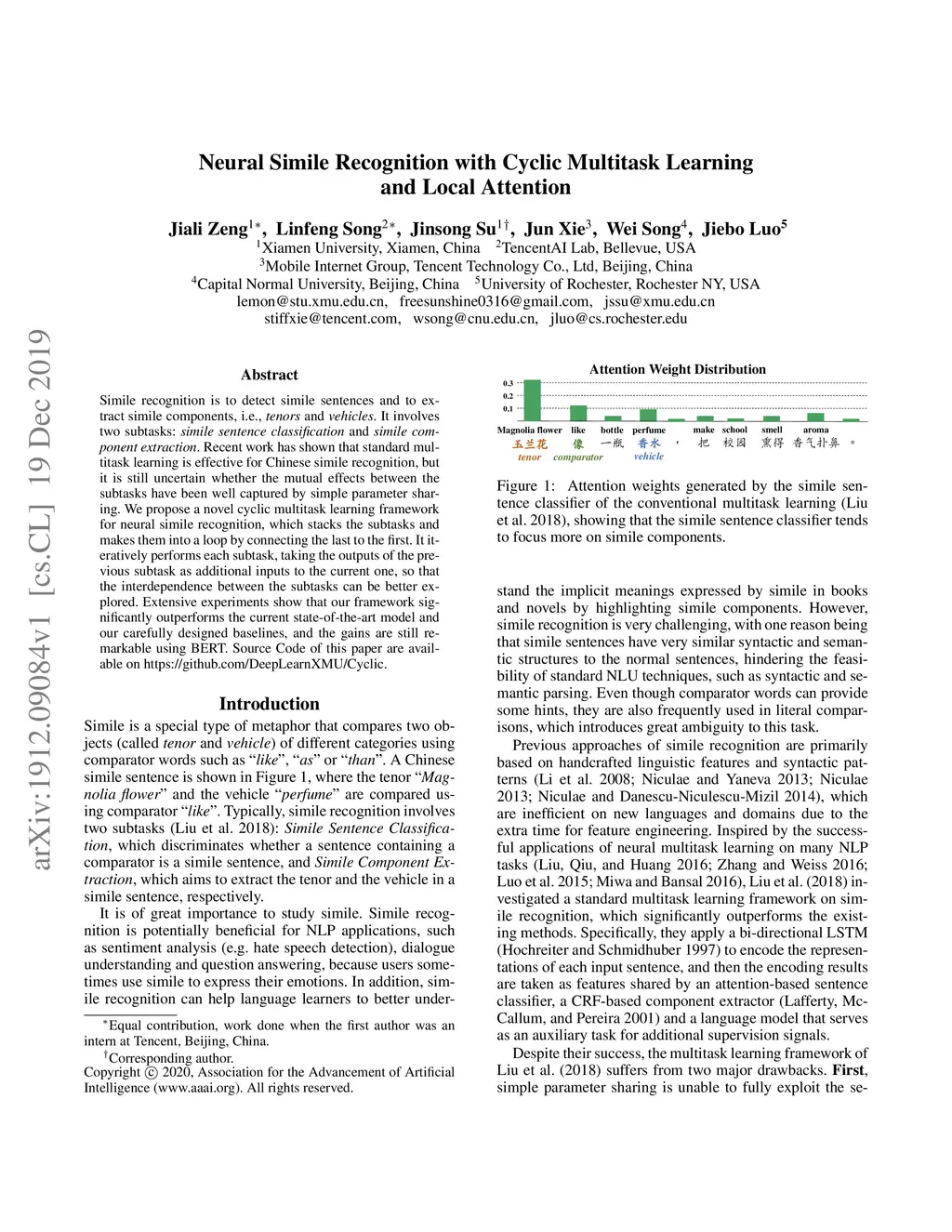 Neural Simile Recognition with Cyclic Multitask Learning and Local