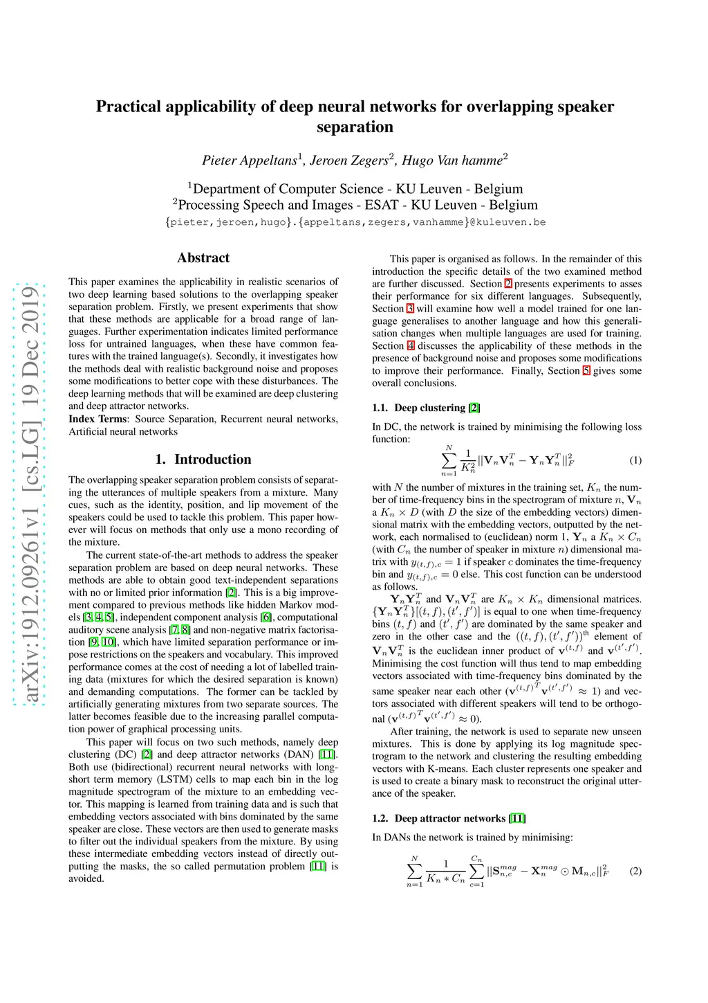 This paper examines the applicability in realistic scenarios of two deep learning based solutions to the overlapping speaker separation problem. Firstly, we present experiments that show that these methods are applicable for a broad range of languages. Further experimentation indicates limited performance loss for untrained languages, when these have common features with the trained language(s). Secondly, it investigates how the methods deal with realistic background noise and proposes some modifications to better cope with these disturbances. The deep learning methods that will be examined are deep clustering and deep attractor networks.