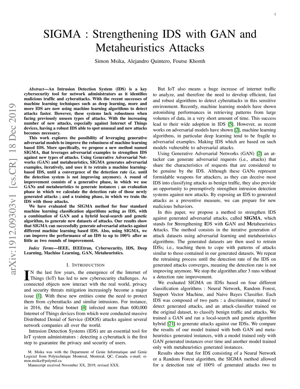 SIGMA : Strengthening IDS with GAN and Metaheuristics Attacks