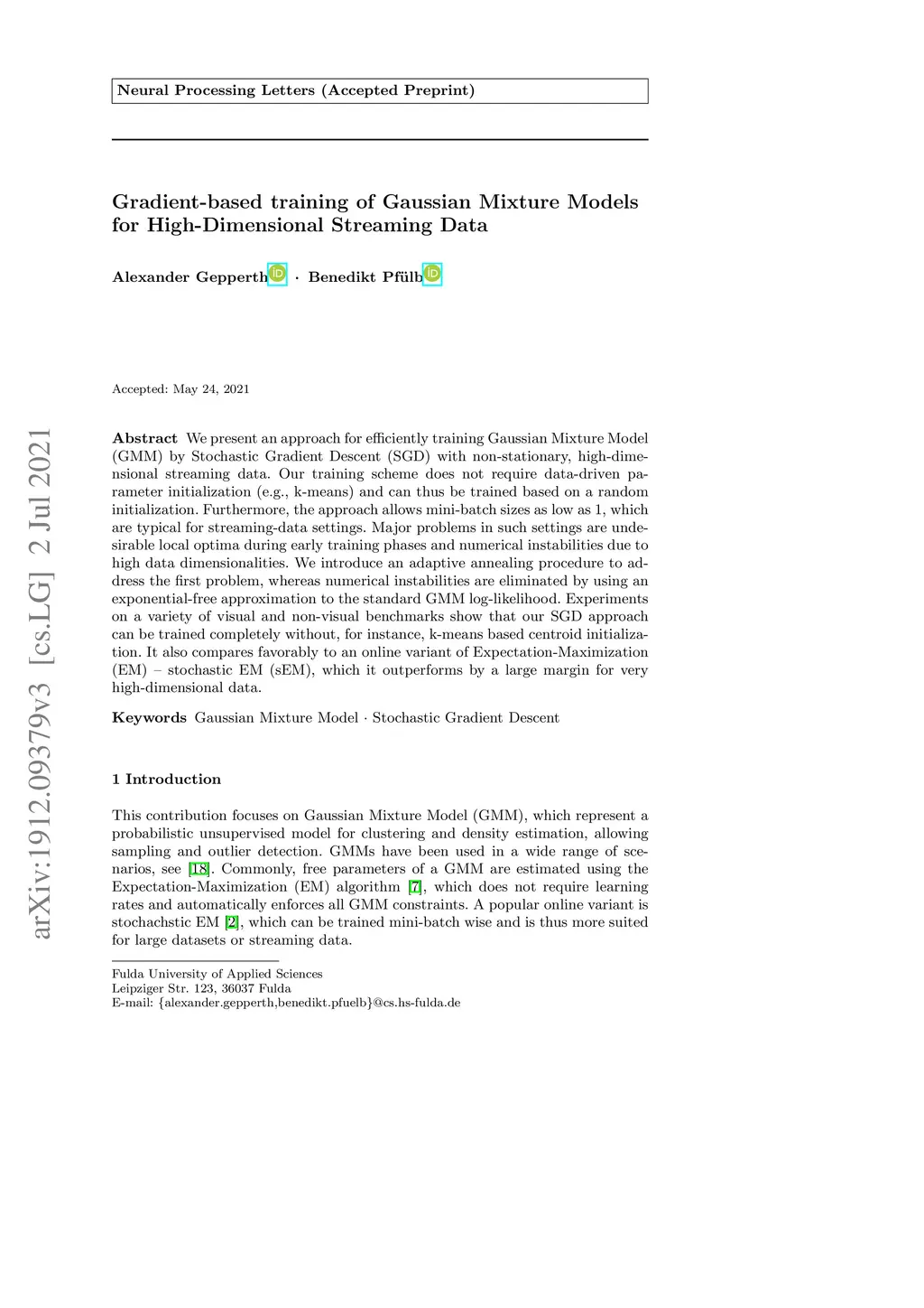 Gradient-based training of Gaussian Mixture Models for High-Dimensional