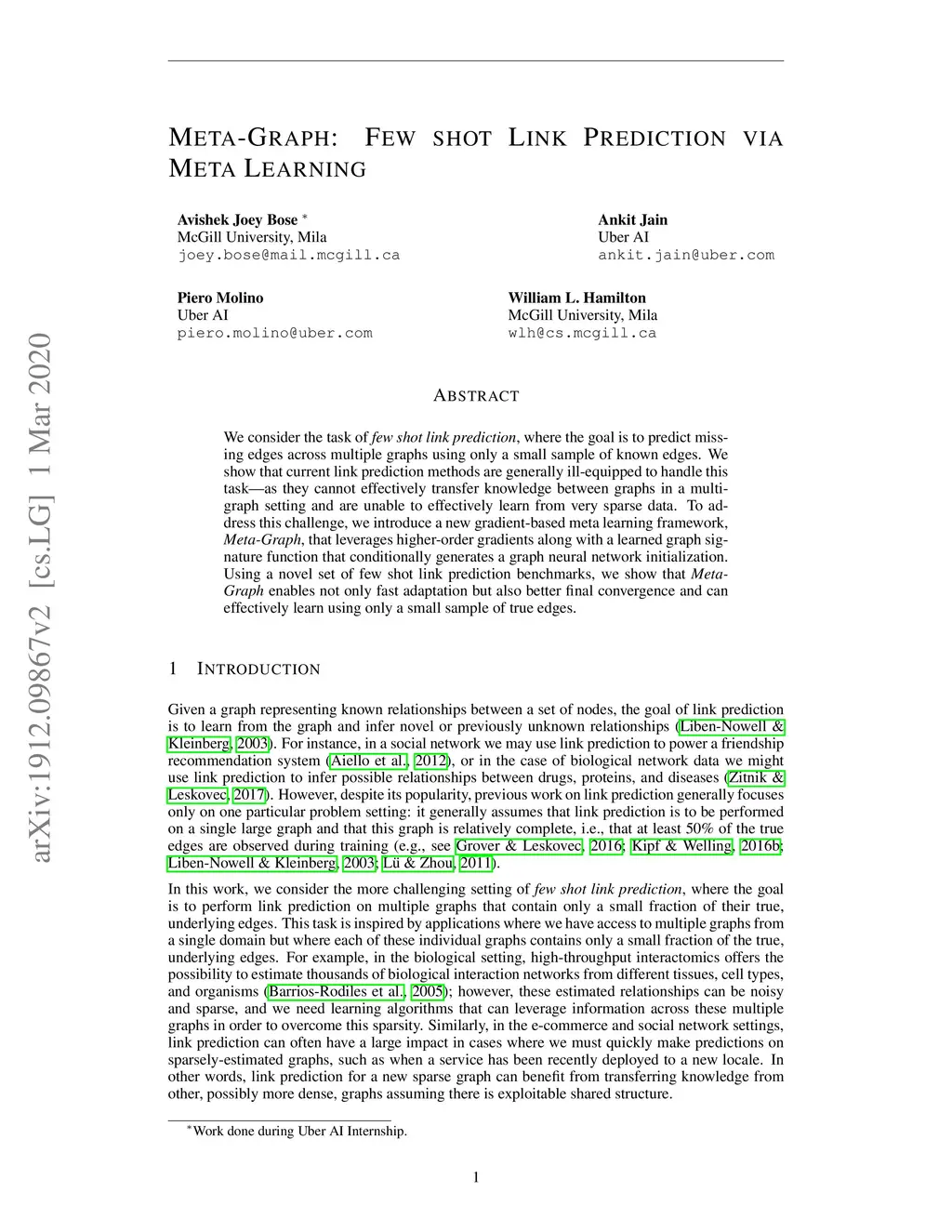 Meta-Graph: Few Shot Link Prediction via Meta Learning