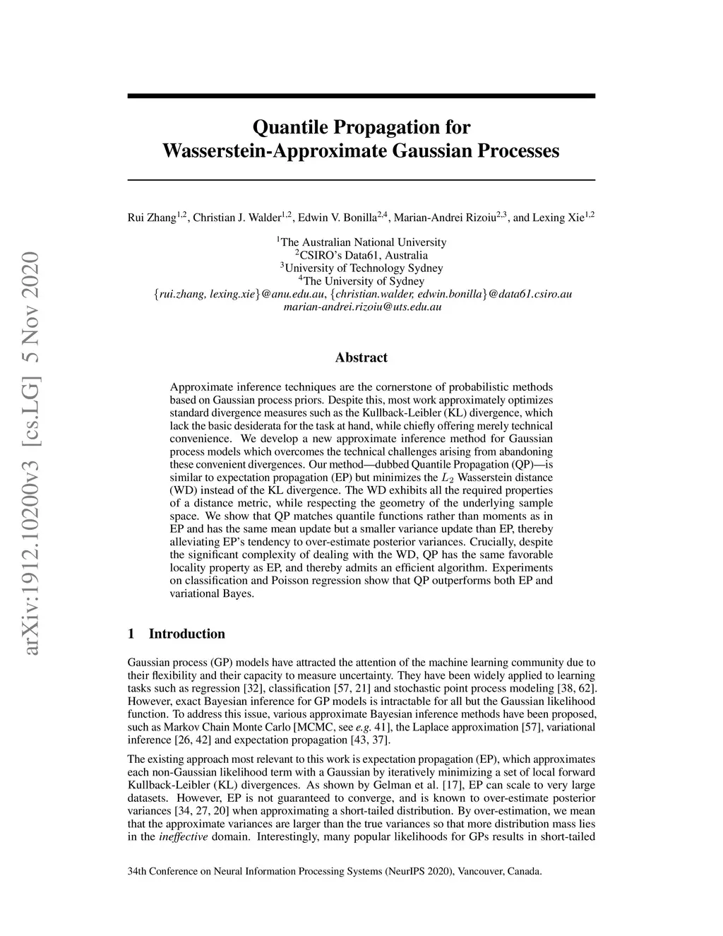 Quantile Propagation for Wasserstein-Approximate Gaussian Processes