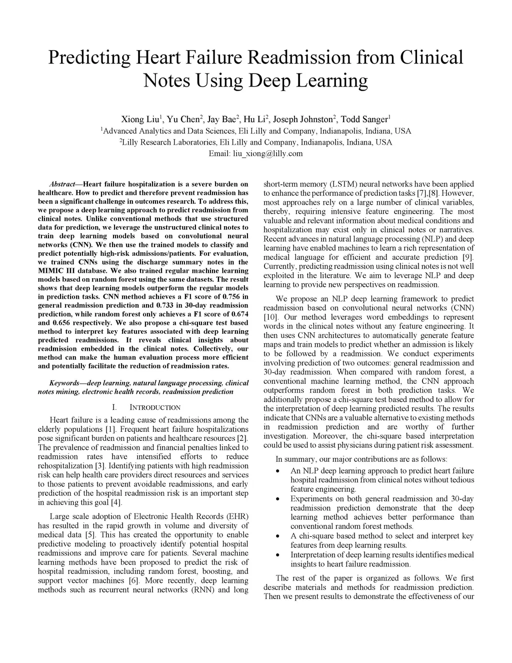 Predicting Heart Failure Readmission from Clinical Notes Using Deep