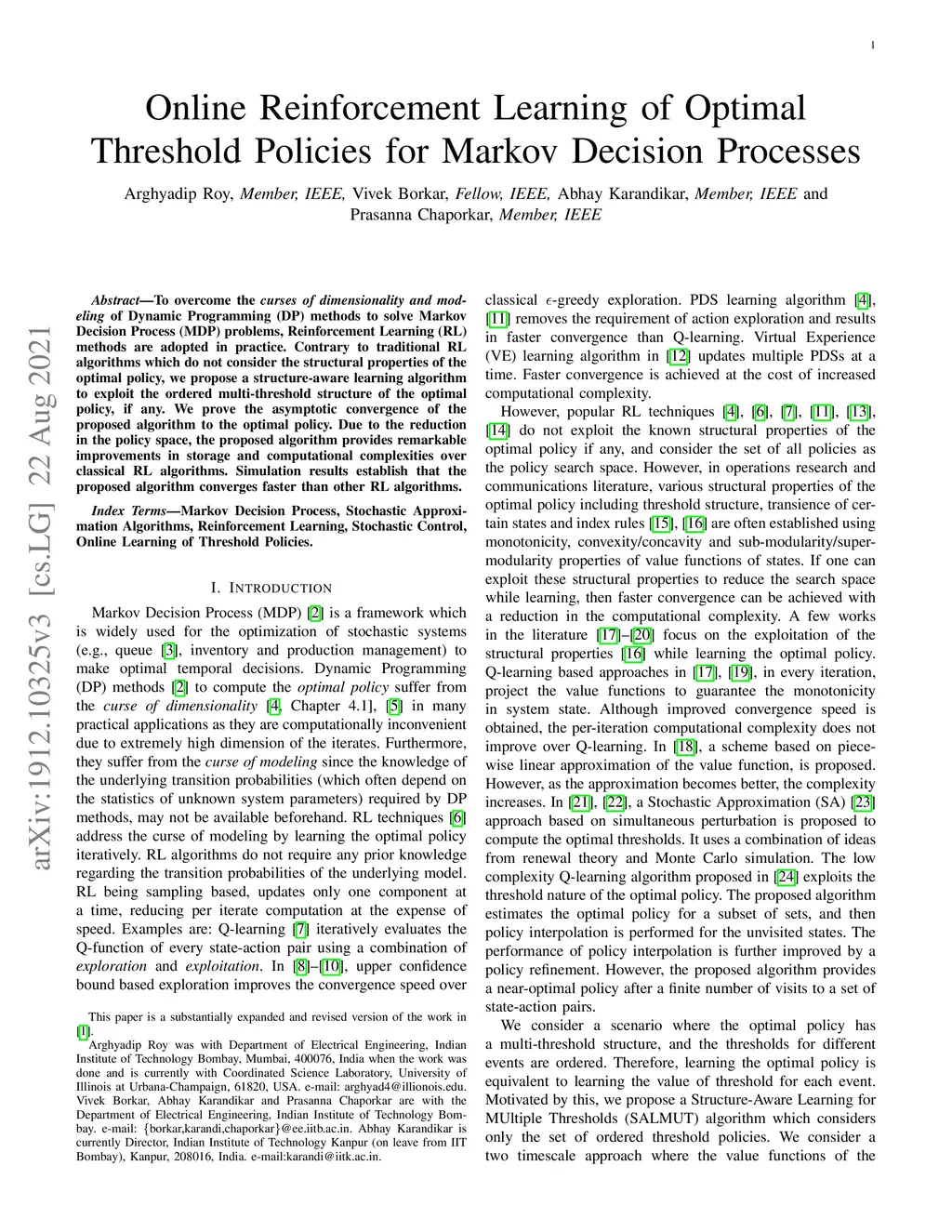 To overcome the curses of dimensionality and modeling of Dynamic Programming (DP) methods to solve Markov Decision Process (MDP) problems, Reinforcement Learning (RL) methods are adopted in practice. Contrary to traditional RL algorithms which do not consider the structural properties of the optimal policy, we propose a structure-aware learning algorithm to exploit the ordered multi-threshold structure of the optimal policy, if any. We prove the asymptotic convergence of the proposed algorithm to the optimal policy. Due to the reduction in the policy space, the proposed algorithm provides remarkable improvements in storage and computational complexities over classical RL algorithms. Simulation results establish that the proposed algorithm converges faster than other RL algorithms.