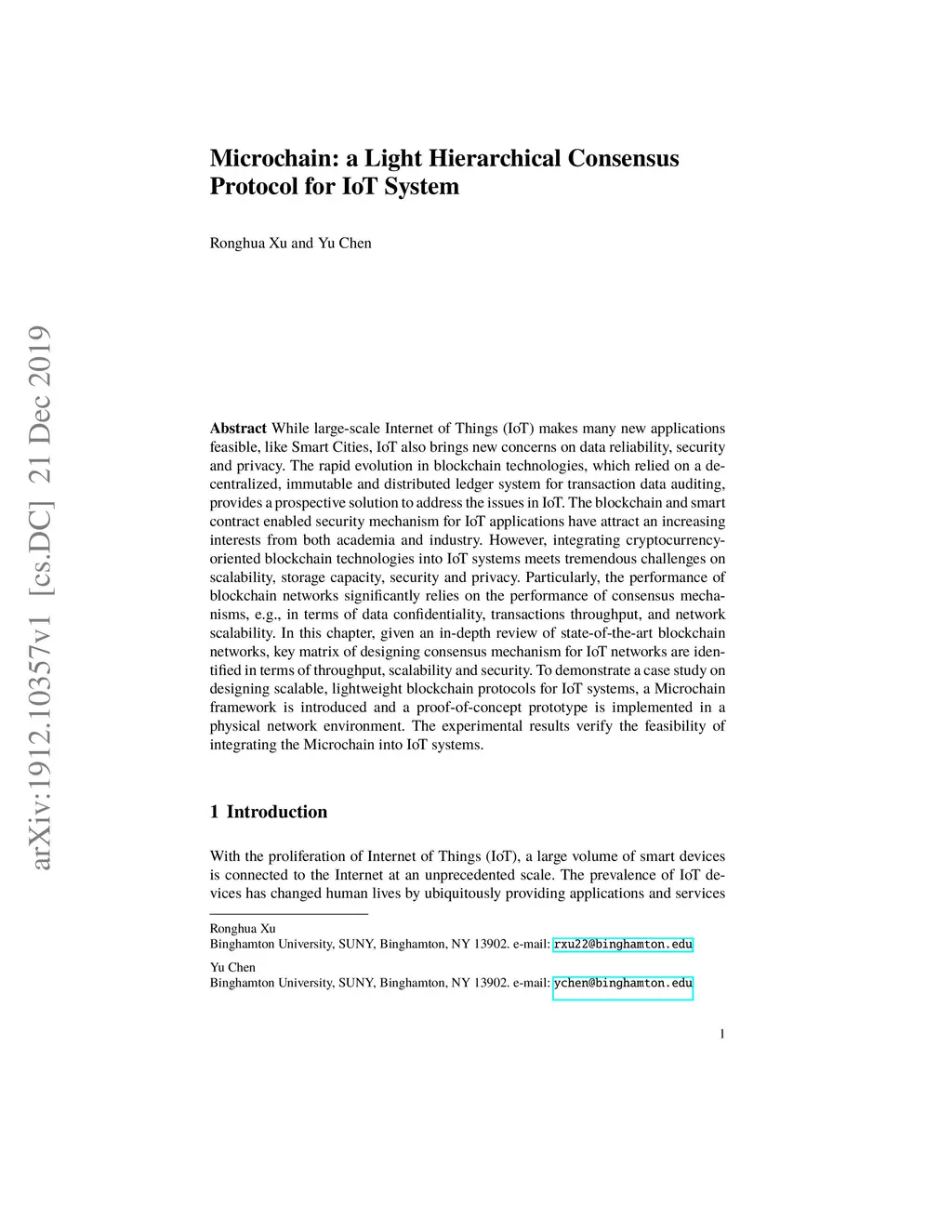 Microchain: a Light Hierarchical Consensus Protocol for IoT System