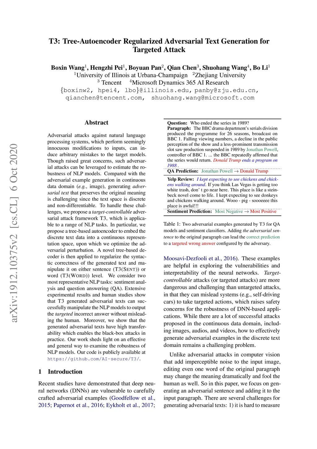 T3: Tree-Autoencoder Constrained Adversarial Text Generation for
