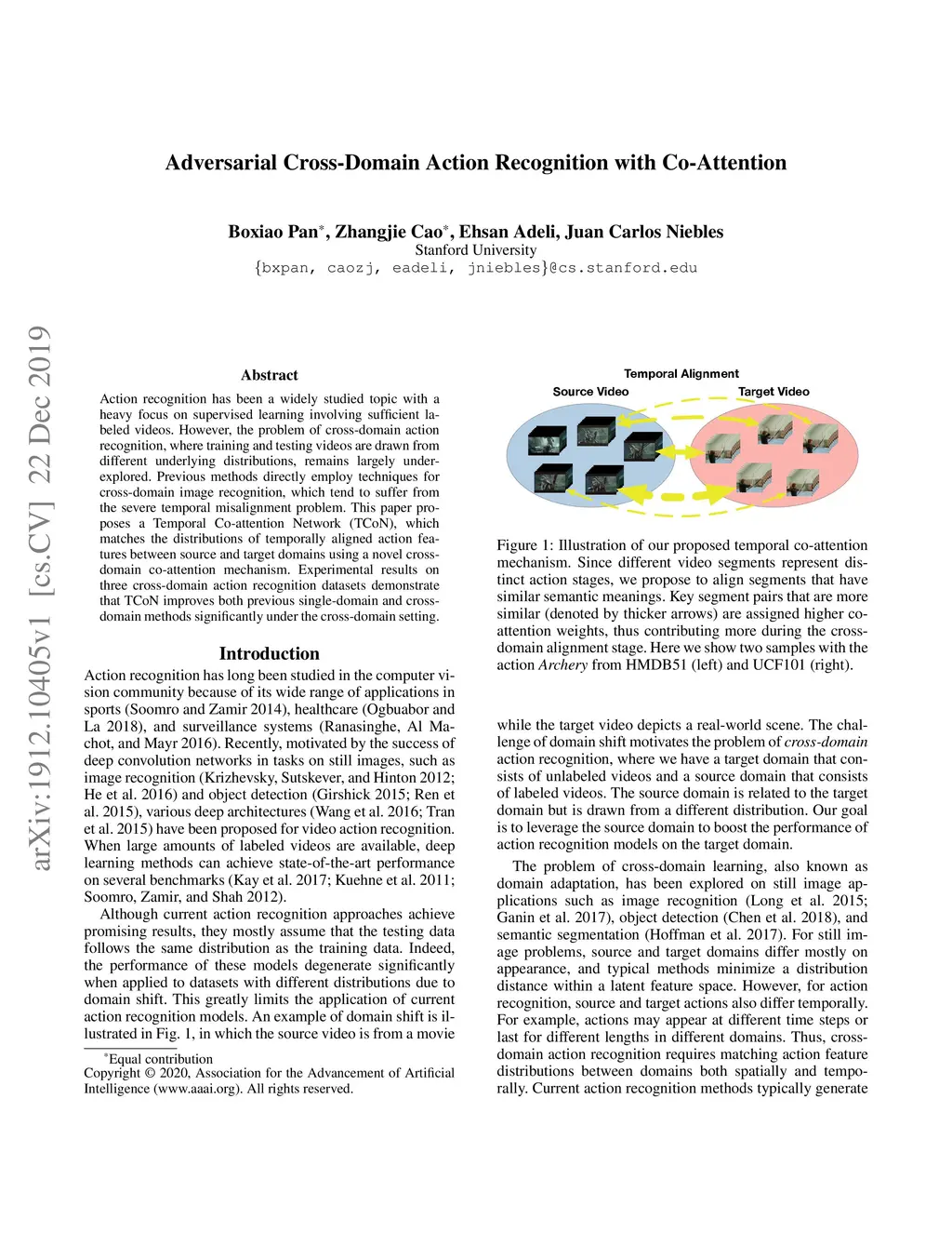Adversarial Cross-Domain Action Recognition with Co-Attention