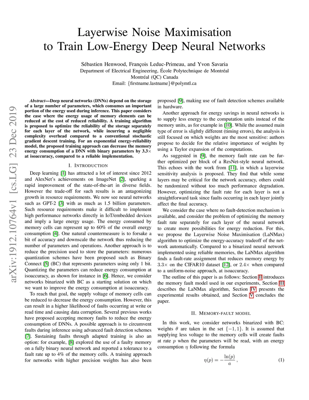 Layerwise Noise Maximisation to Train Low-Energy Deep Neural Networks