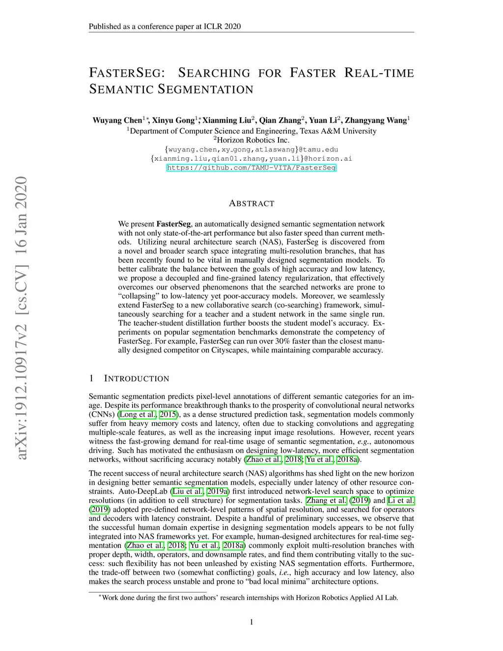 FasterSeg: Searching for Faster Real-time Semantic Segmentation