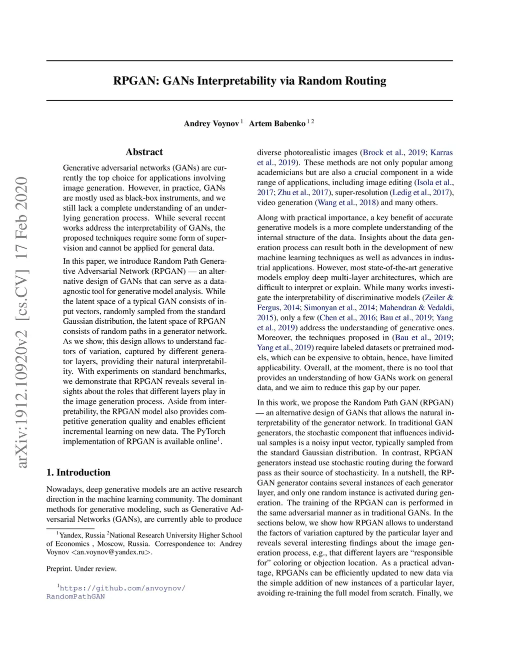 In this paper, we introduce Random Path Generative Adversarial Network (RPGAN) -- an alternative design of GANs that can serve as a tool for generative model analysis. While the latent space of a typical GAN consists of input vectors, randomly sampled from the standard Gaussian distribution, the latent space of RPGAN consists of random paths in a generator network. As we show, this design allows to understand factors of variation, captured by different generator layers, providing their natural interpretability. With experiments on standard benchmarks, we demonstrate that RPGAN reveals several interesting insights about the roles that different layers play in the image generation process. Aside from interpretability, the RPGAN model also provides competitive generation quality and allows efficient incremental learning on new data.