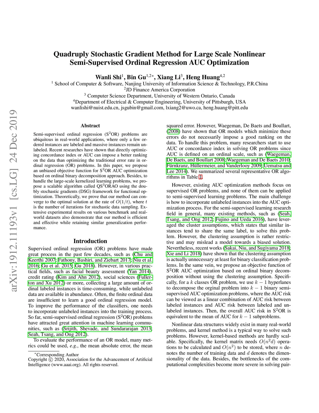 Semi-supervised ordinal regression (SOR) problems are ubiquitous in real-world applications, where only a few ordered instances are labeled and massive instances remain unlabeled. Recent researches have shown that directly optimizing concordance index or AUC can impose a better ranking on the data than optimizing the traditional error rate in ordinal regression (OR) problems. In this paper, we propose an unbiased objective function for SOR AUC optimization based on ordinal binary decomposition approach. Besides, to handle the large-scale kernelized learning problems, we propose a scalable algorithm called QSORAO using the doubly stochastic gradients (DSG) framework for functional optimization. Theoretically, we prove that our method can converge to the optimal solution at the rate of , where is the number of iterations for stochastic data sampling. Extensive experimental results on various benchmark and real-world datasets also demonstrate that our method is efficient and effective while retaining similar generalization performance.