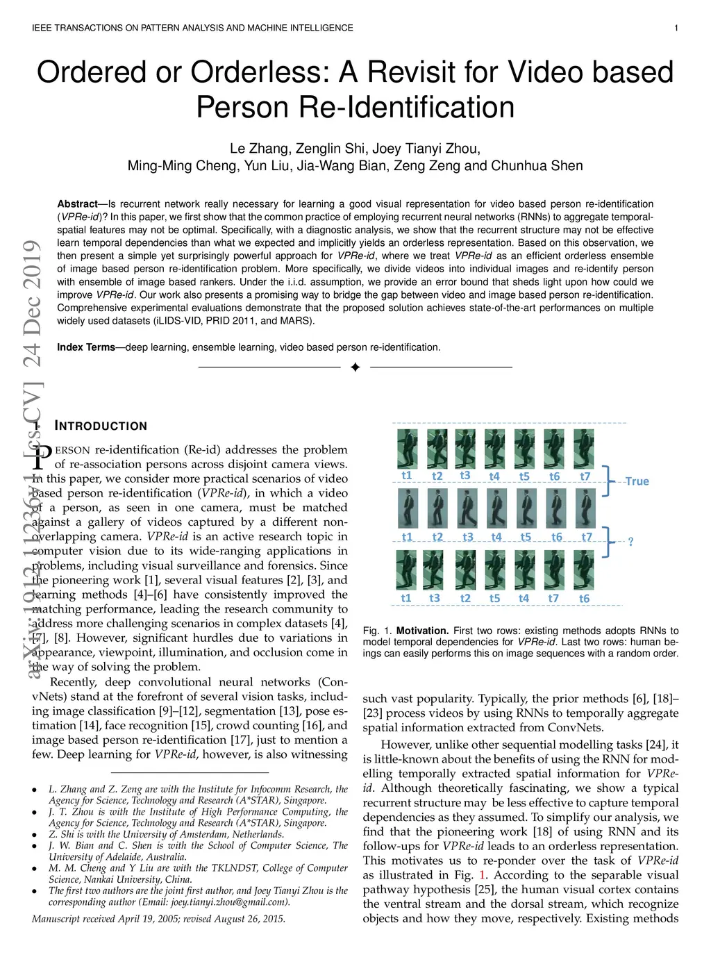 Ordered or Orderless: A Revisit for Video based Person Re-Identification