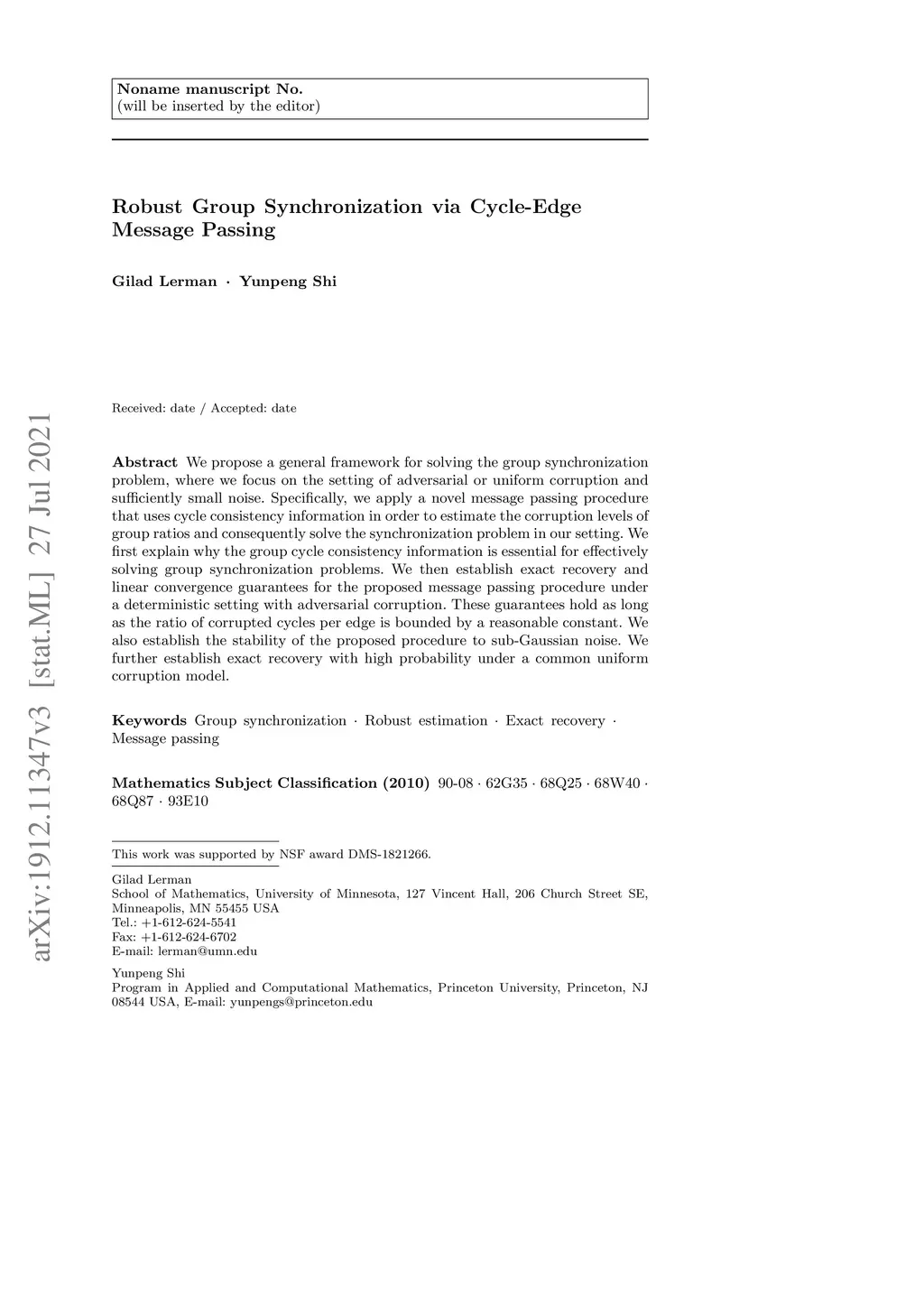 We propose a general framework for solving the group synchronization problem, where we focus on the setting of adversarial or uniform corruption and sufficiently small noise. Specifically, we apply a novel message passing procedure that uses cycle consistency information in order to estimate the corruption levels of group ratios and consequently solve the synchronization problem in our setting. We first explain why the group cycle consistency information is essential for effectively solving group synchronization problems. We then establish exact recovery and linear convergence guarantees for the proposed message passing procedure under a deterministic setting with adversarial corruption. These guarantees hold as long as the ratio of corrupted cycles per edge is bounded by a reasonable constant. We also establish the stability of the proposed procedure to sub-Gaussian noise. We further establish exact recovery with high probability under a common uniform corruption model.