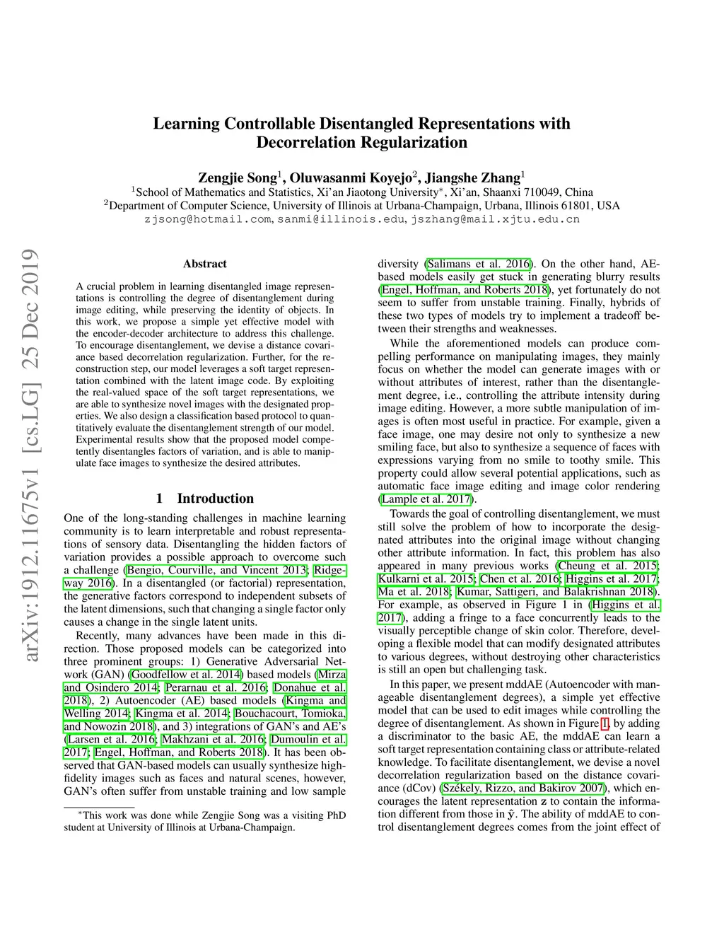 Learning Controllable Disentangled Representations with Decorrelation