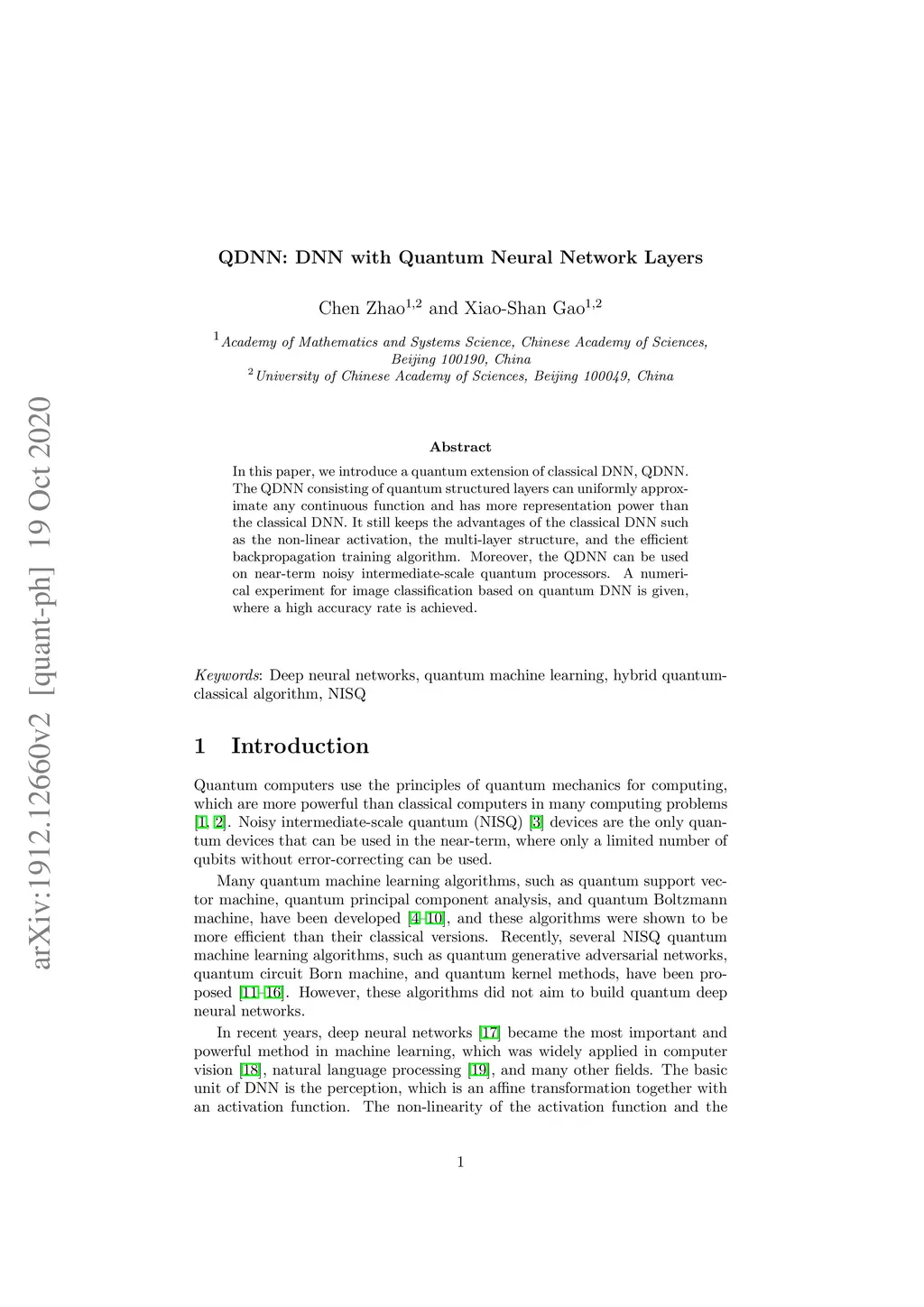 QDNN: DNN with Quantum Neural Network Layers