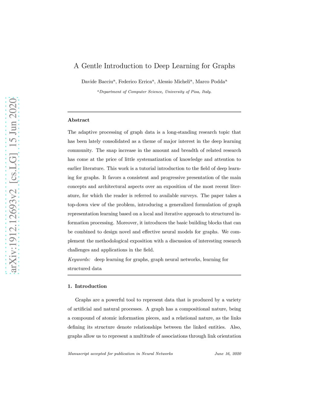 A Gentle Introduction to Deep Learning for Graphs