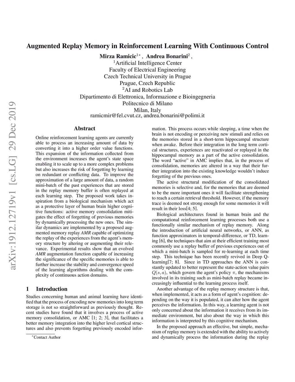 Augmented Replay Memory in Reinforcement Learning With Continuous