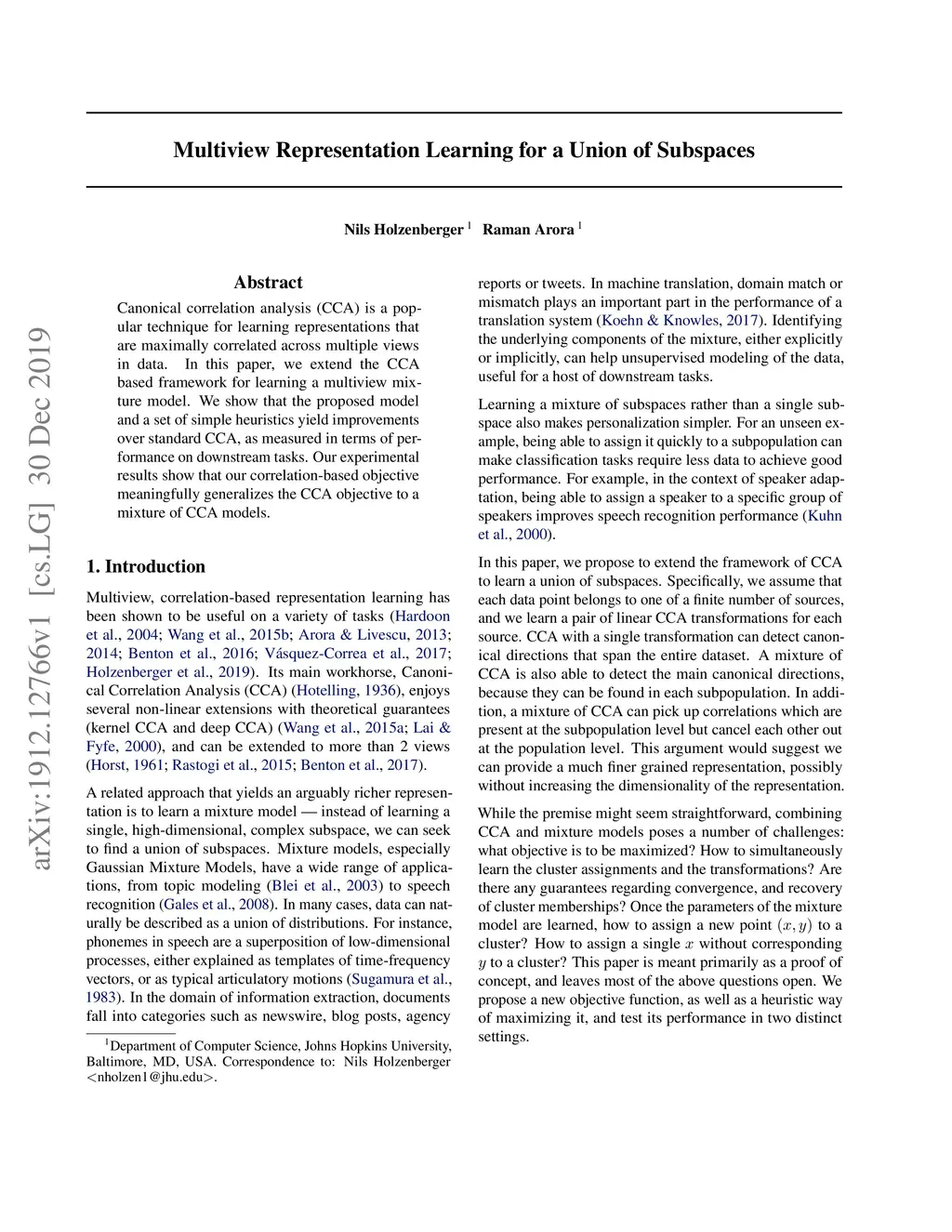 Canonical correlation analysis (CCA) is a popular technique for learning representations that are maximally correlated across multiple views in data. In this paper, we extend the CCA based framework for learning a multiview mixture model. We show that the proposed model and a set of simple heuristics yield improvements over standard CCA, as measured in terms of performance on downstream tasks. Our experimental results show that our correlation-based objective meaningfully generalizes the CCA objective to a mixture of CCA models.