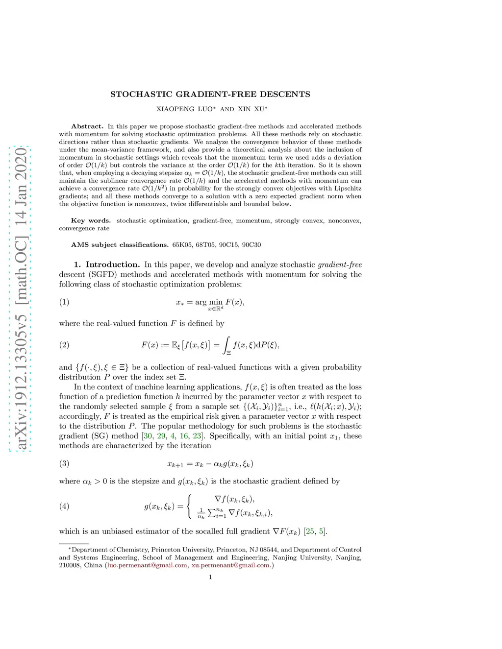 In this paper we propose stochastic gradient-free methods and accelerated methods with momentum for solving stochastic optimization problems. All these methods rely on stochastic directions rather than stochastic gradients. We analyze the convergence behavior of these methods under the mean-variance framework, and also provide a theoretical analysis about the inclusion of momentum in stochastic settings which reveals that the momentum term we used adds a deviation of order but controls the variance at the order for the th iteration. So it is shown that, when employing a decaying stepsize , the stochastic gradient-free methods can still maintain the sublinear convergence rate and the accelerated methods with momentum can achieve a convergence rate in probability for the strongly convex objectives with Lipschitz gradients; and all these methods converge to a solution with a zero expected gradient norm when the objective function is nonconvex, twice differentiable and bounded below.