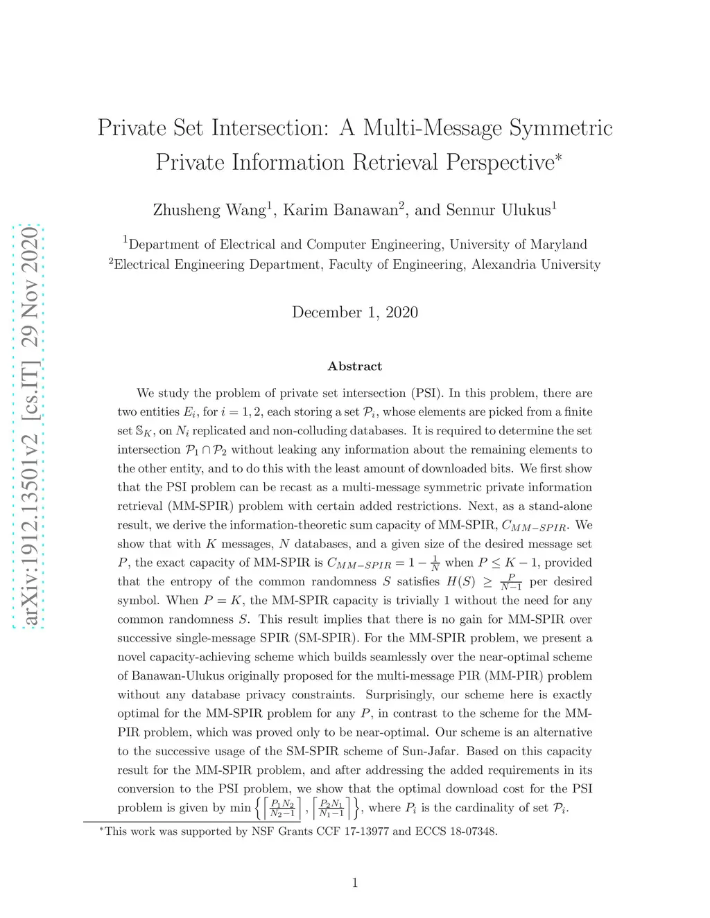 Private Set Intersection: A Multi-Message Symmetric Private Information