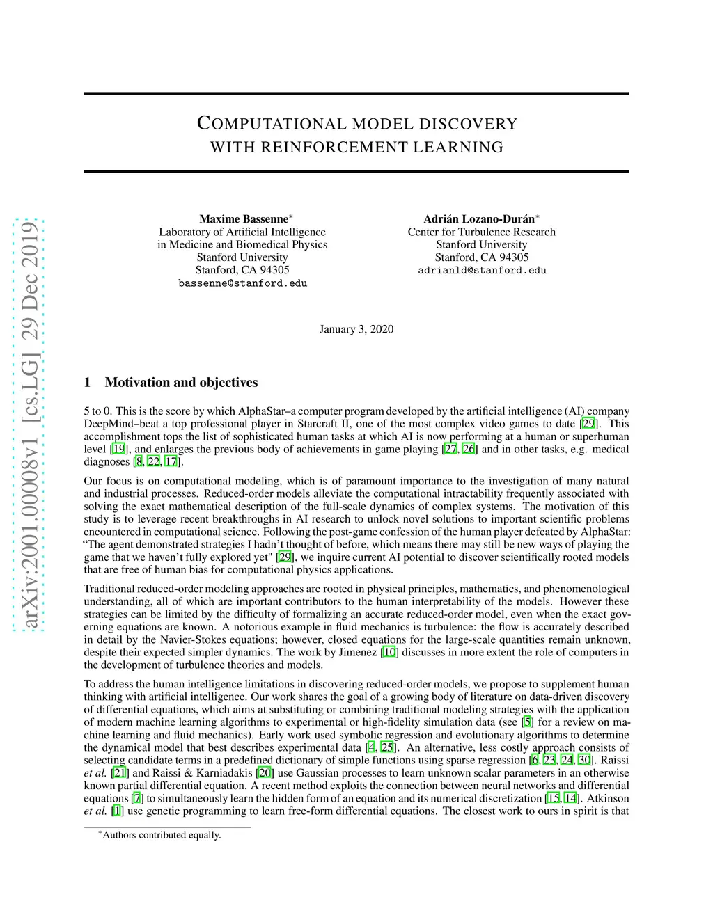 The motivation of this study is to leverage recent breakthroughs in artificial intelligence research to unlock novel solutions to important scientific problems encountered in computational science. To address the human intelligence limitations in discovering reduced-order models, we propose to supplement human thinking with artificial intelligence. Our three-pronged strategy consists of learning (i) models expressed in analytical form, (ii) which are evaluated a posteriori, and iii) using exclusively integral quantities from the reference solution as prior knowledge. In point (i), we pursue interpretable models expressed symbolically as opposed to black-box neural networks, the latter only being used during learning to efficiently parameterize the large search space of possible models. In point (ii), learned models are dynamically evaluated a posteriori in the computational solver instead of based on a priori information from preprocessed high-fidelity data, thereby accounting for the specificity of the solver at hand such as its numerics. Finally in point (iii), the exploration of new models is solely guided by predefined integral quantities, e.g., averaged quantities of engineering interest in Reynolds-averaged or large-eddy simulations (LES). We use a coupled deep reinforcement learning framework and computational solver to concurrently achieve these objectives. The combination of reinforcement learning with objectives (i), (ii) and (iii) differentiate our work from previous modeling attempts based on machine learning. In this report, we provide a high-level description of the model discovery framework with reinforcement learning. The method is detailed for the application of discovering missing terms in differential equations. An elementary instantiation of the method is described that discovers missing terms in the Burgers' equation.