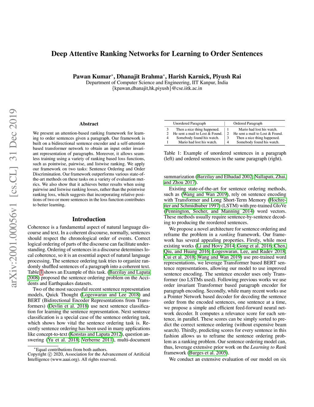 Deep Attentive Ranking Networks for Learning to Order Sentences