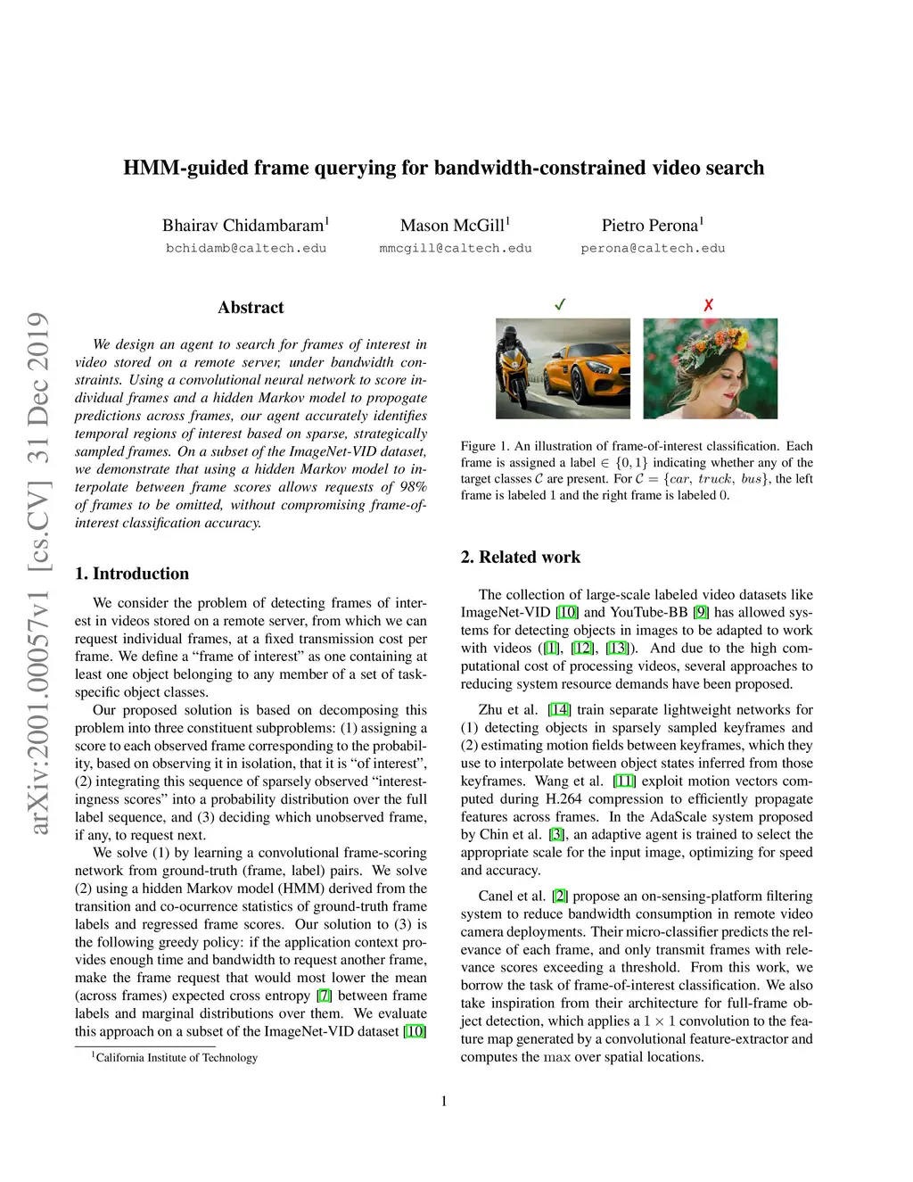 We design an agent to search for frames of interest in video stored on a remote server, under bandwidth constraints. Using a convolutional neural network to score individual frames and a hidden Markov model to propagate predictions across frames, our agent accurately identifies temporal regions of interest based on sparse, strategically sampled frames. On a subset of the ImageNet-VID dataset, we demonstrate that using a hidden Markov model to interpolate between frame scores allows requests of 98% of frames to be omitted, without compromising frame-of-interest classification accuracy.
