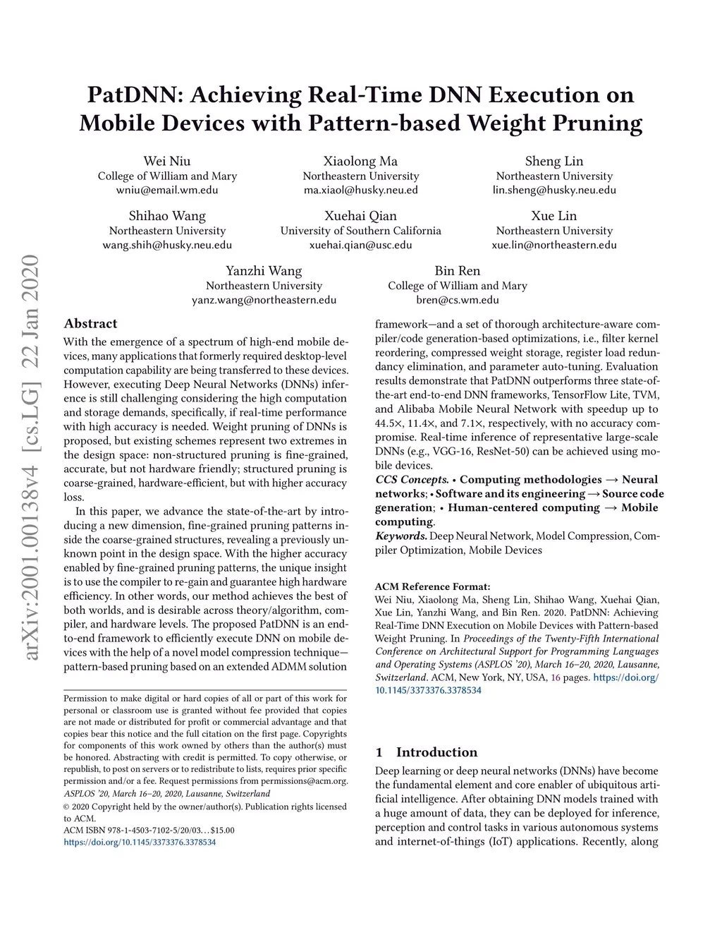 PatDNN: Achieving Real-Time DNN Execution on Mobile Devices with