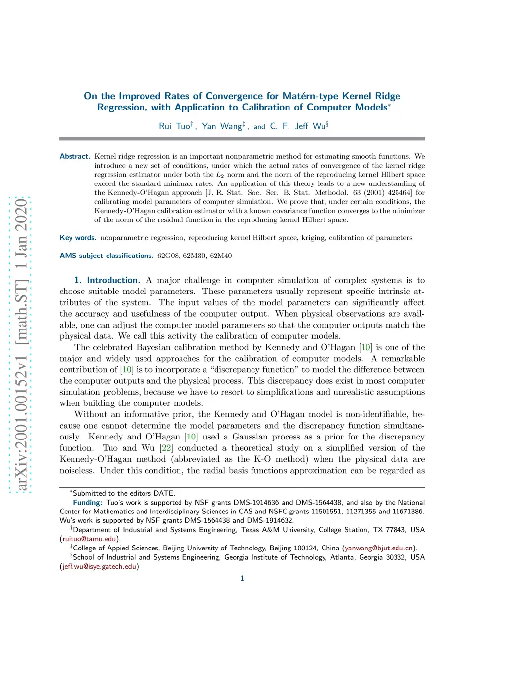 Kernel ridge regression is an important nonparametric method for estimating smooth functions. We introduce a new set of conditions, under which the actual rates of convergence of the kernel ridge regression estimator under both the L_2 norm and the norm of the reproducing kernel Hilbert space exceed the standard minimax rates. An application of this theory leads to a new understanding of the Kennedy-O'Hagan approach for calibrating model parameters of computer simulation. We prove that, under certain conditions, the Kennedy-O'Hagan calibration estimator with a known covariance function converges to the minimizer of the norm of the residual function in the reproducing kernel Hilbert space.