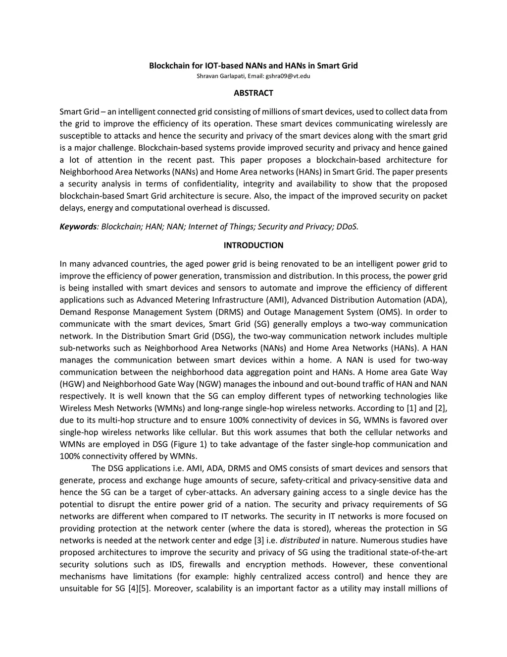 Blockchain for IOT-based NANs and HANs in Smart Grid