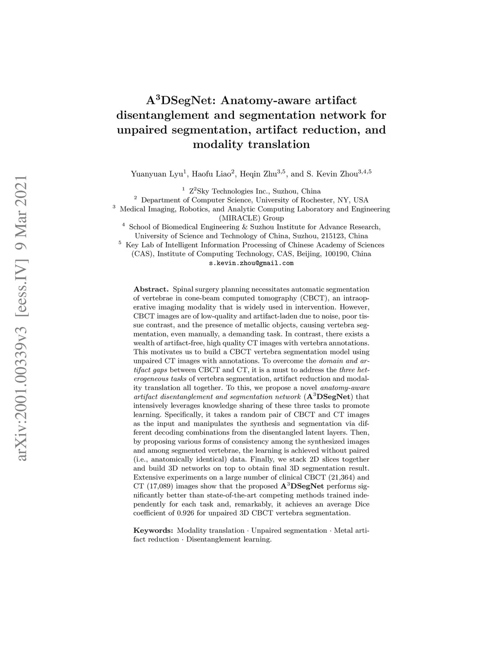 ADSegNet: Anatomy-aware artifact disentanglement and segmentation