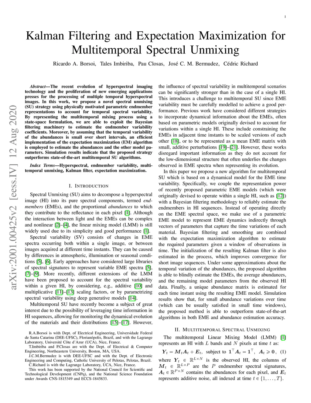Kalman Filtering and Expectation Maximization for Multitemporal Spectral