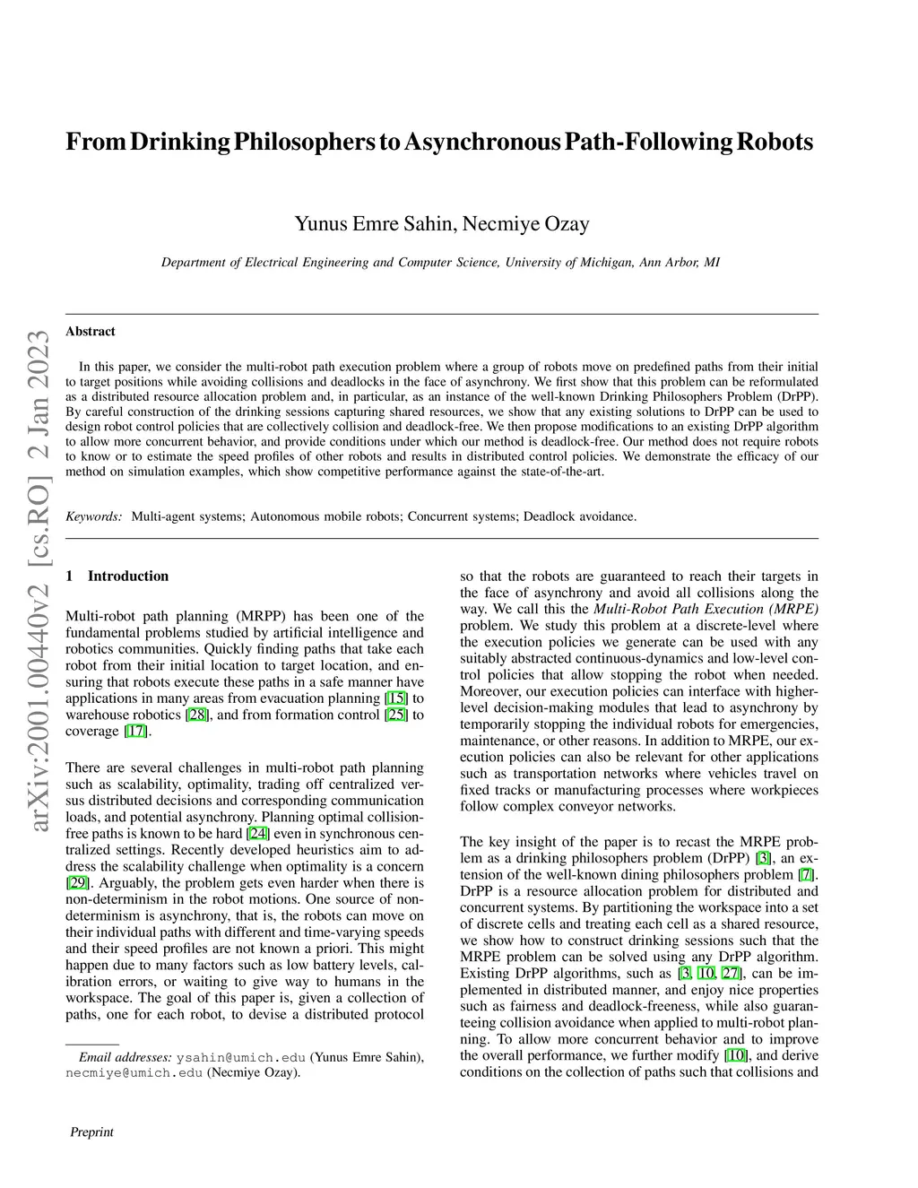 From Drinking Philosophers to Asynchronous Path-Following Robots