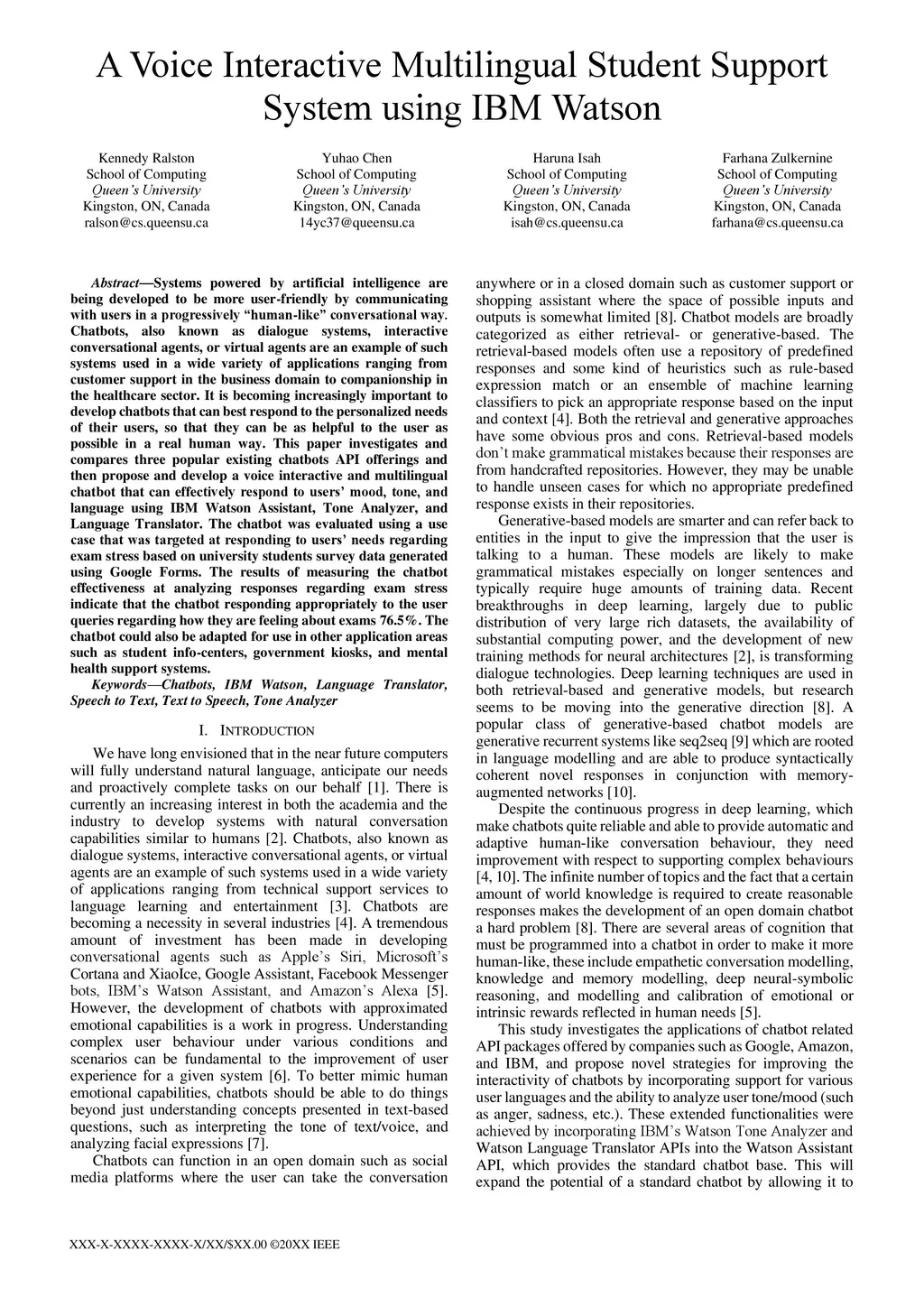 A Voice Interactive Multilingual Student Support System using IBM Watson