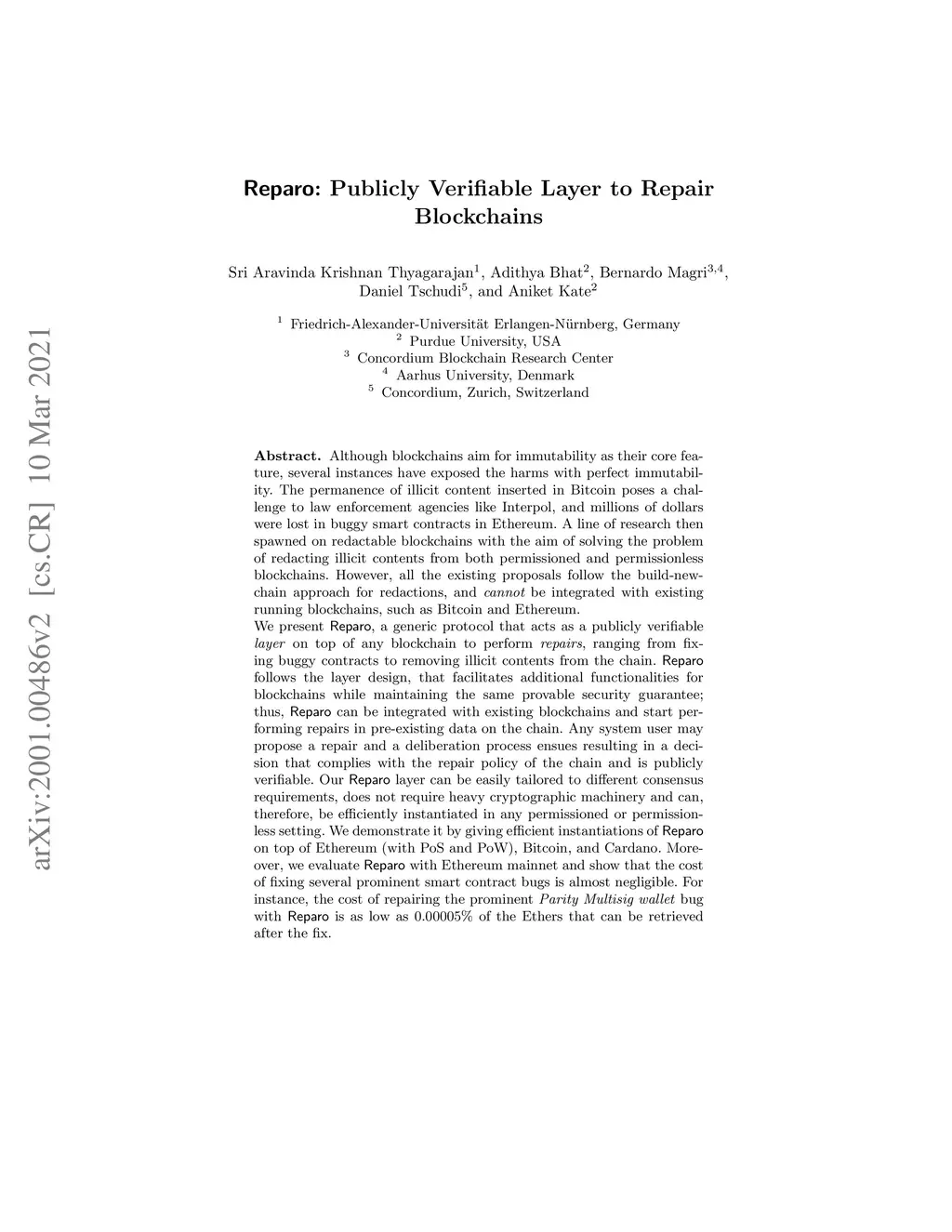 Reparo: Publicly Verifiable Layer to Repair Blockchains