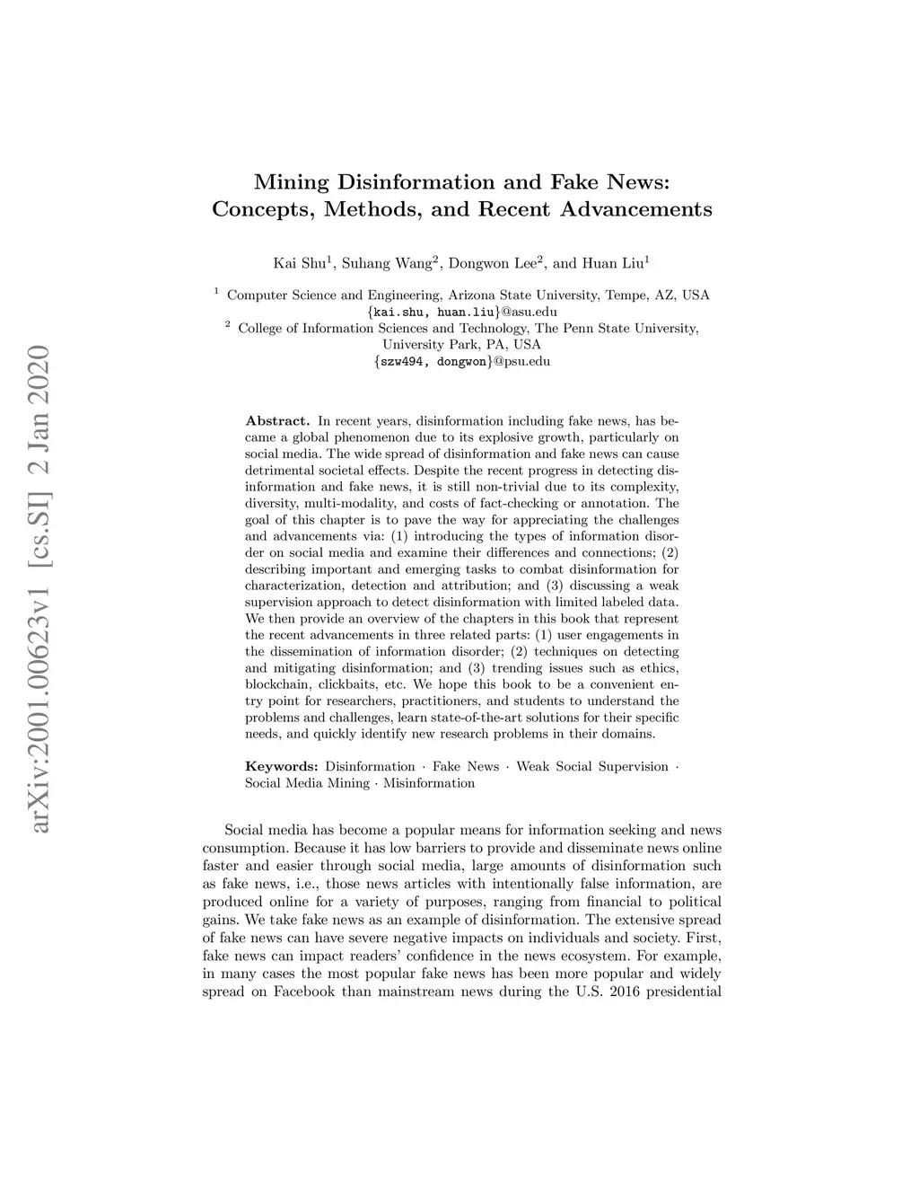Mining Disinformation and Fake News: Concepts, Methods, and Recent