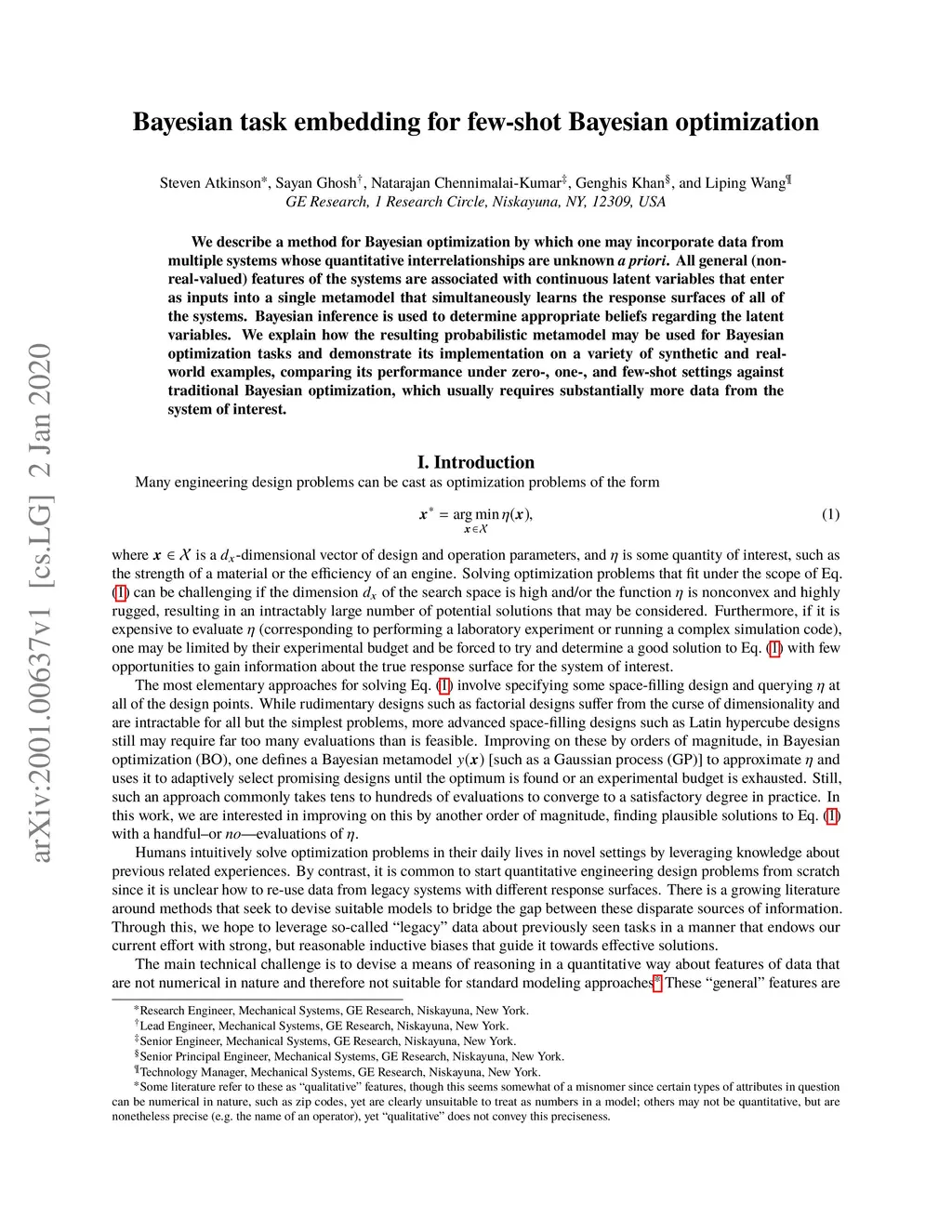 We describe a method for Bayesian optimization by which one may incorporate data from multiple systems whose quantitative interrelationships are unknown a priori. All general (nonreal-valued) features of the systems are associated with continuous latent variables that enter as inputs into a single metamodel that simultaneously learns the response surfaces of all of the systems. Bayesian inference is used to determine appropriate beliefs regarding the latent variables. We explain how the resulting probabilistic metamodel may be used for Bayesian optimization tasks and demonstrate its implementation on a variety of synthetic and real-world examples, comparing its performance under zero-, one-, and few-shot settings against traditional Bayesian optimization, which usually requires substantially more data from the system of interest.