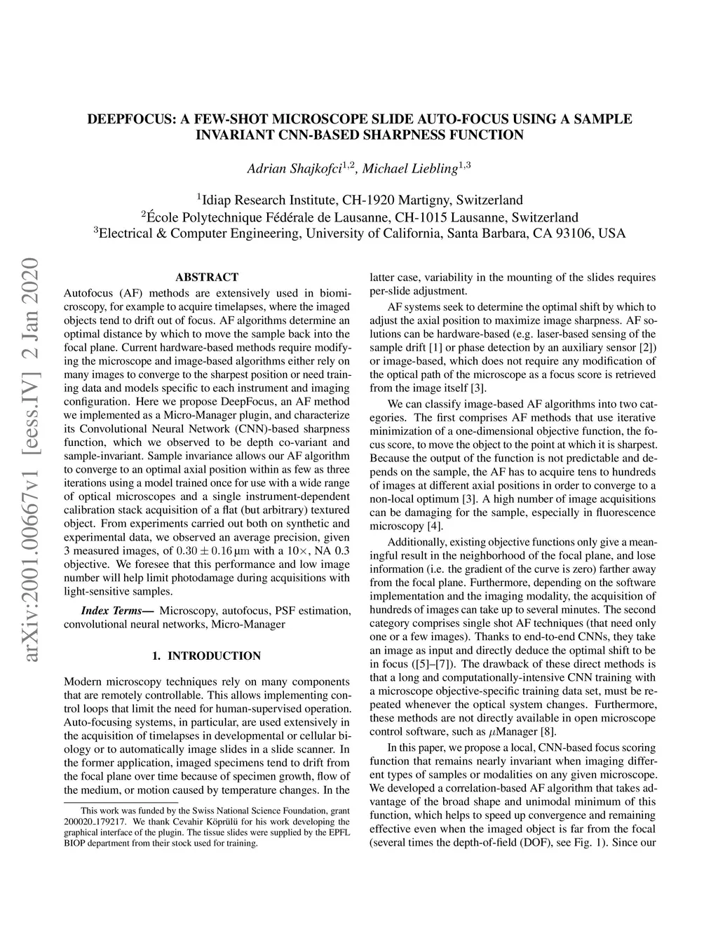 DeepFocus: a Few-Shot Microscope Slide Auto-Focus using a Sample